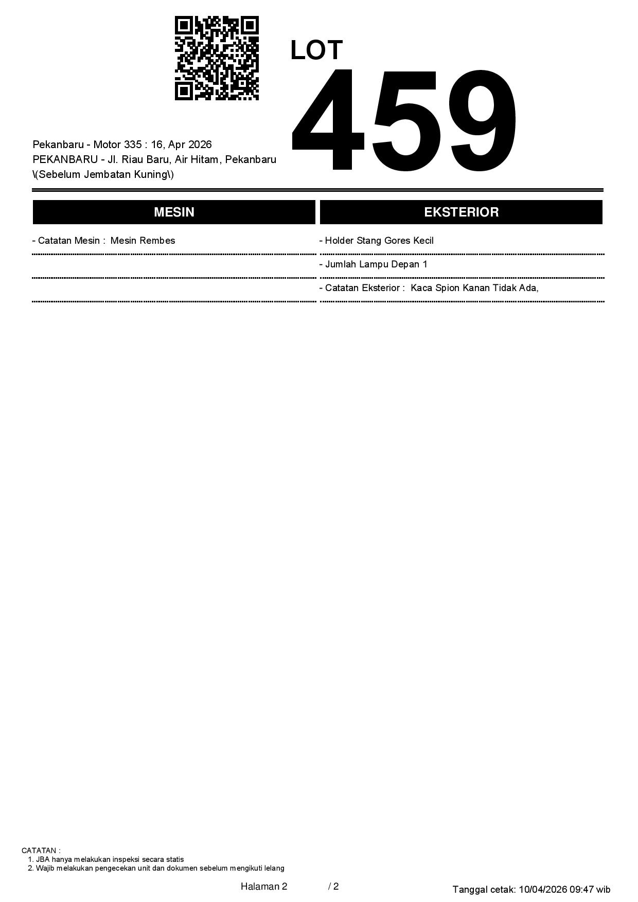 2. Peserta lelang wajib cek unit & dokumen