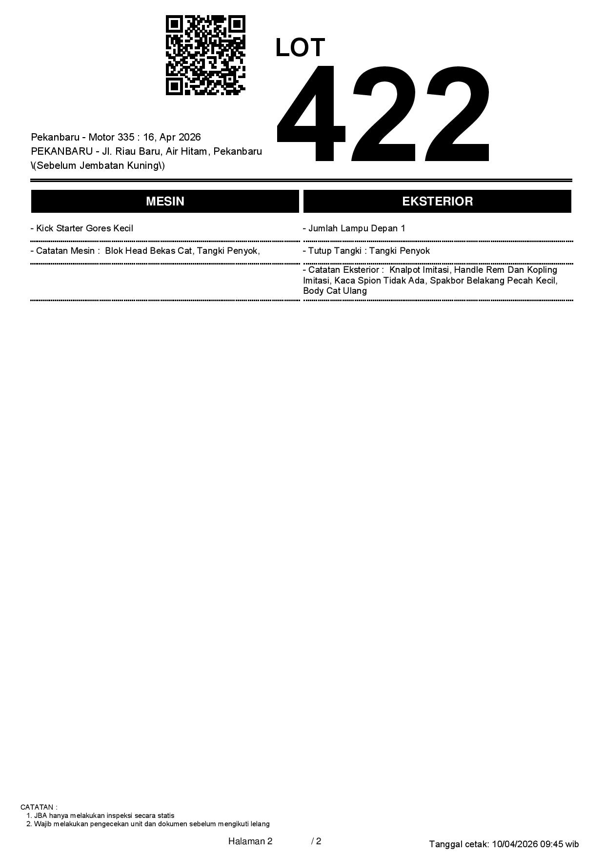 2. Peserta lelang wajib cek unit & dokumen