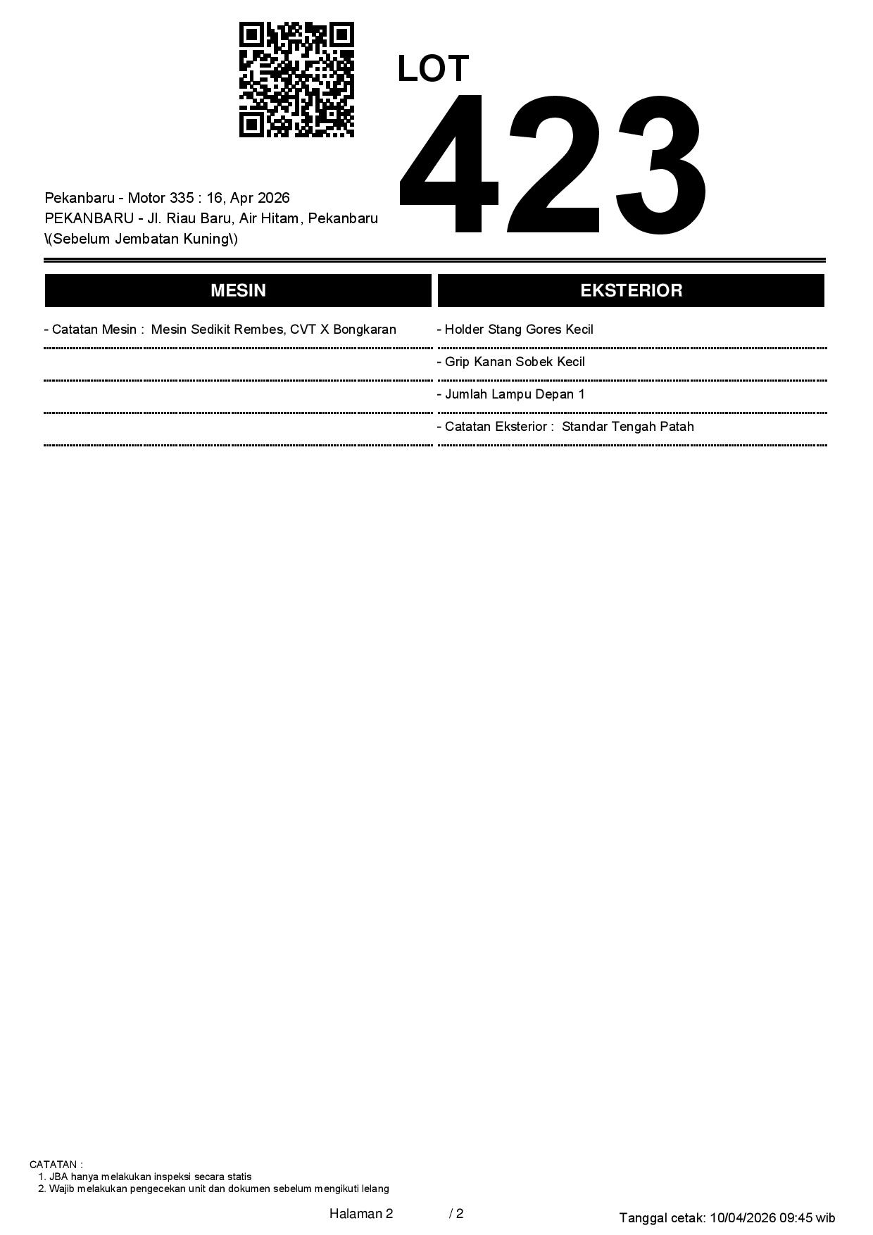 2. Peserta lelang wajib cek unit & dokumen