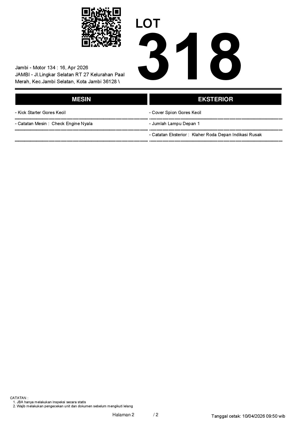 2. Peserta lelang wajib cek unit & dokumen