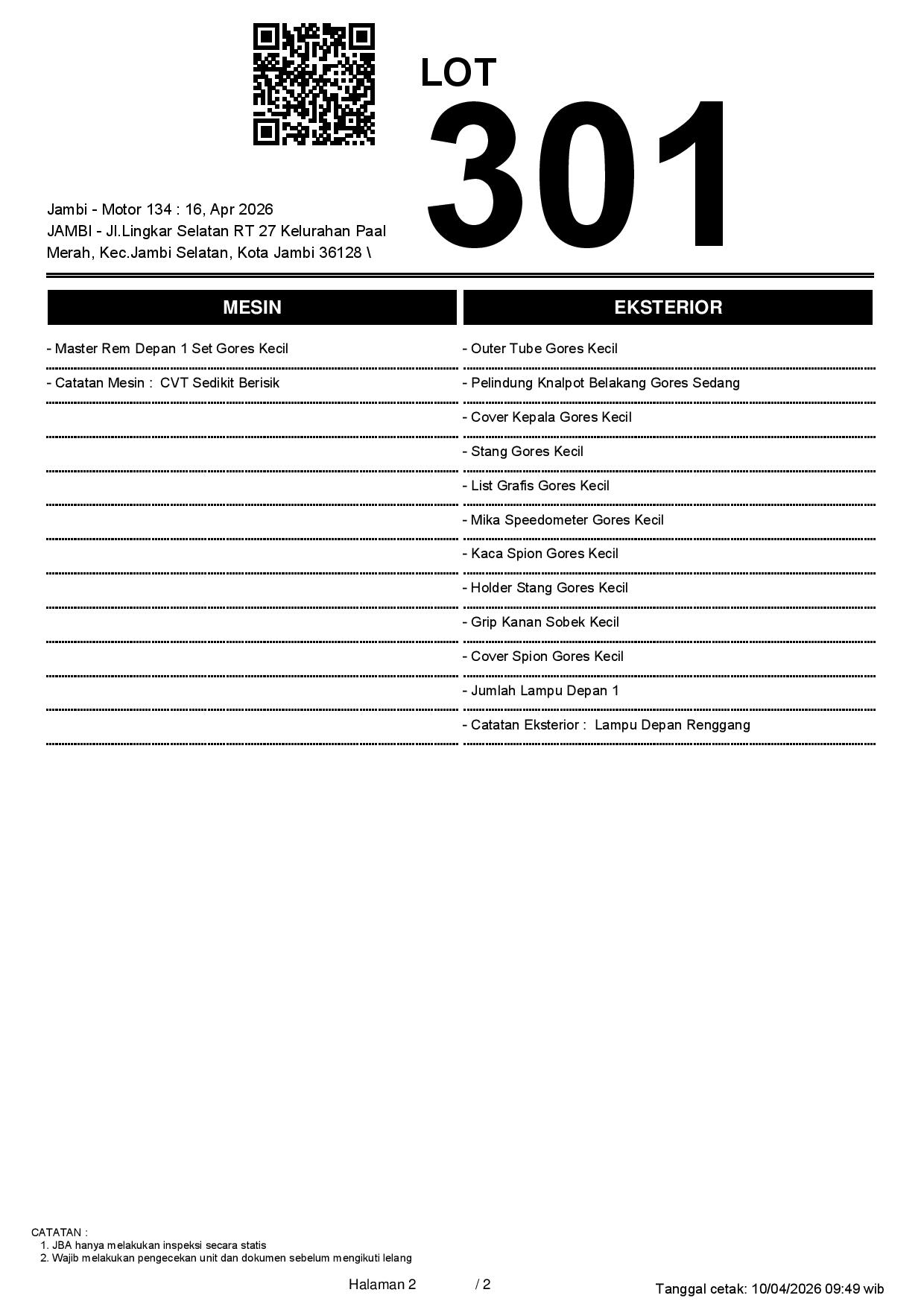 2. Peserta lelang wajib cek unit & dokumen