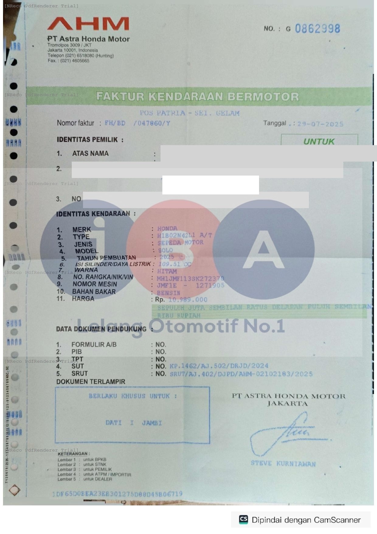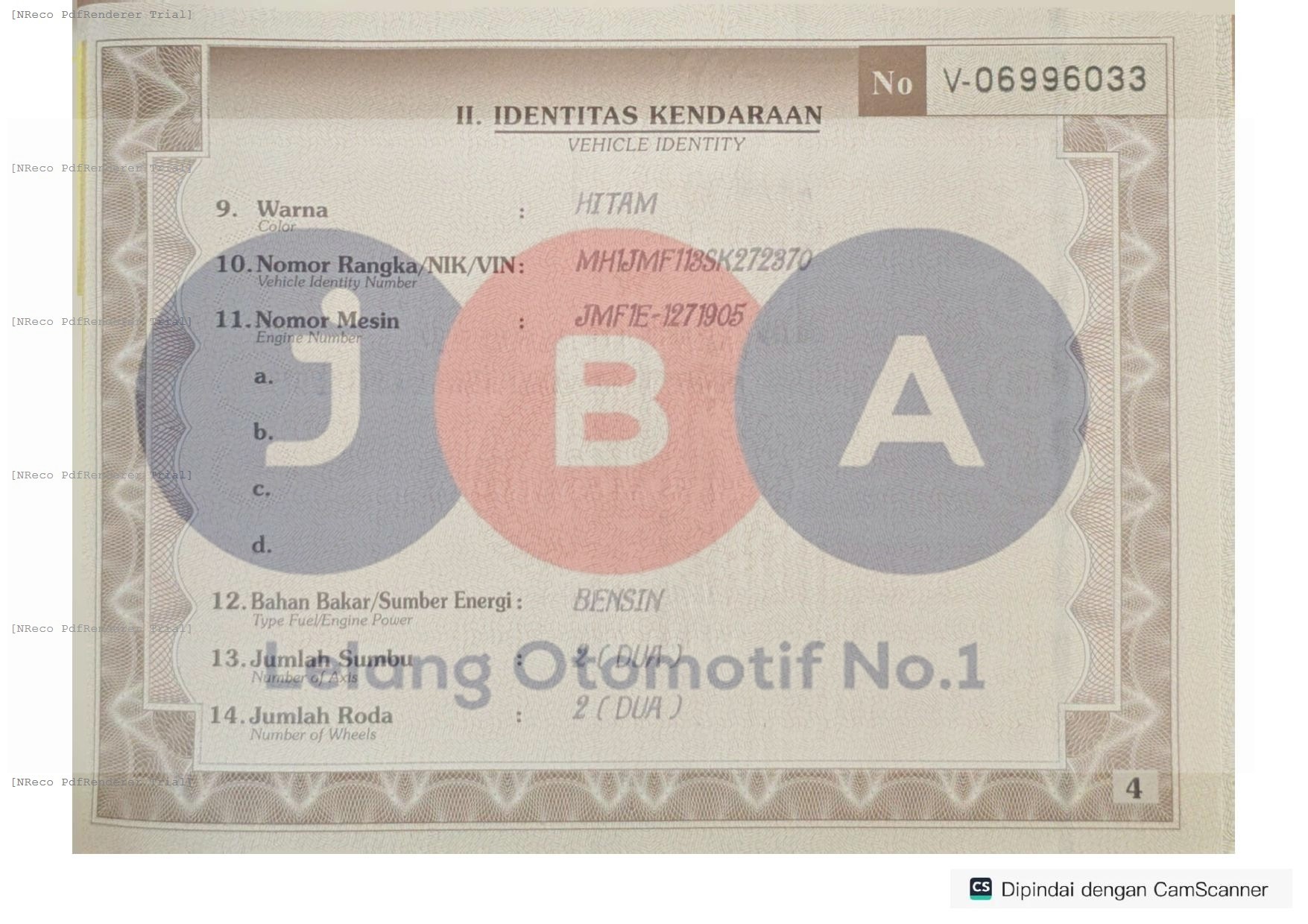 Nomor Rangka