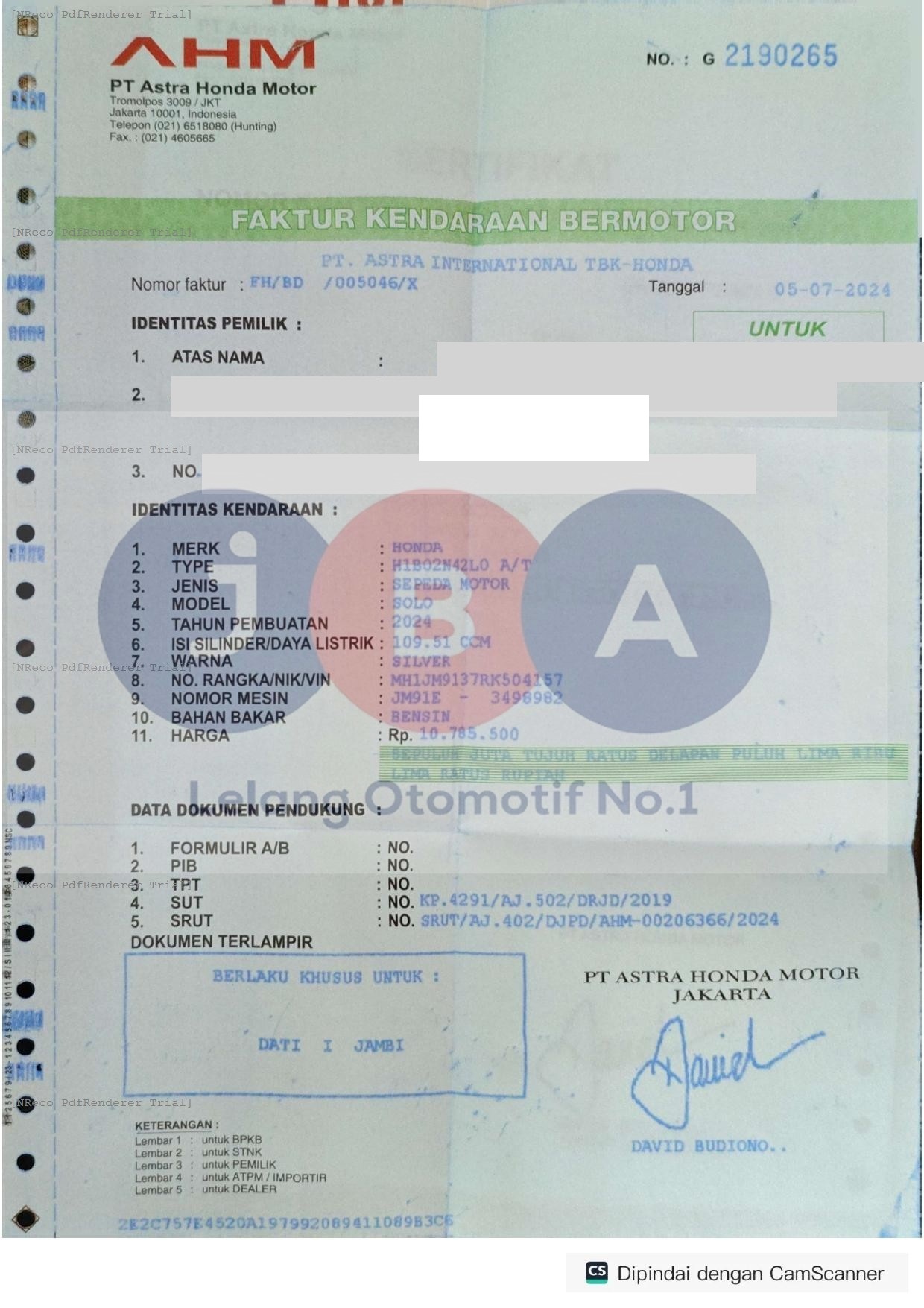 Nomor Rangka