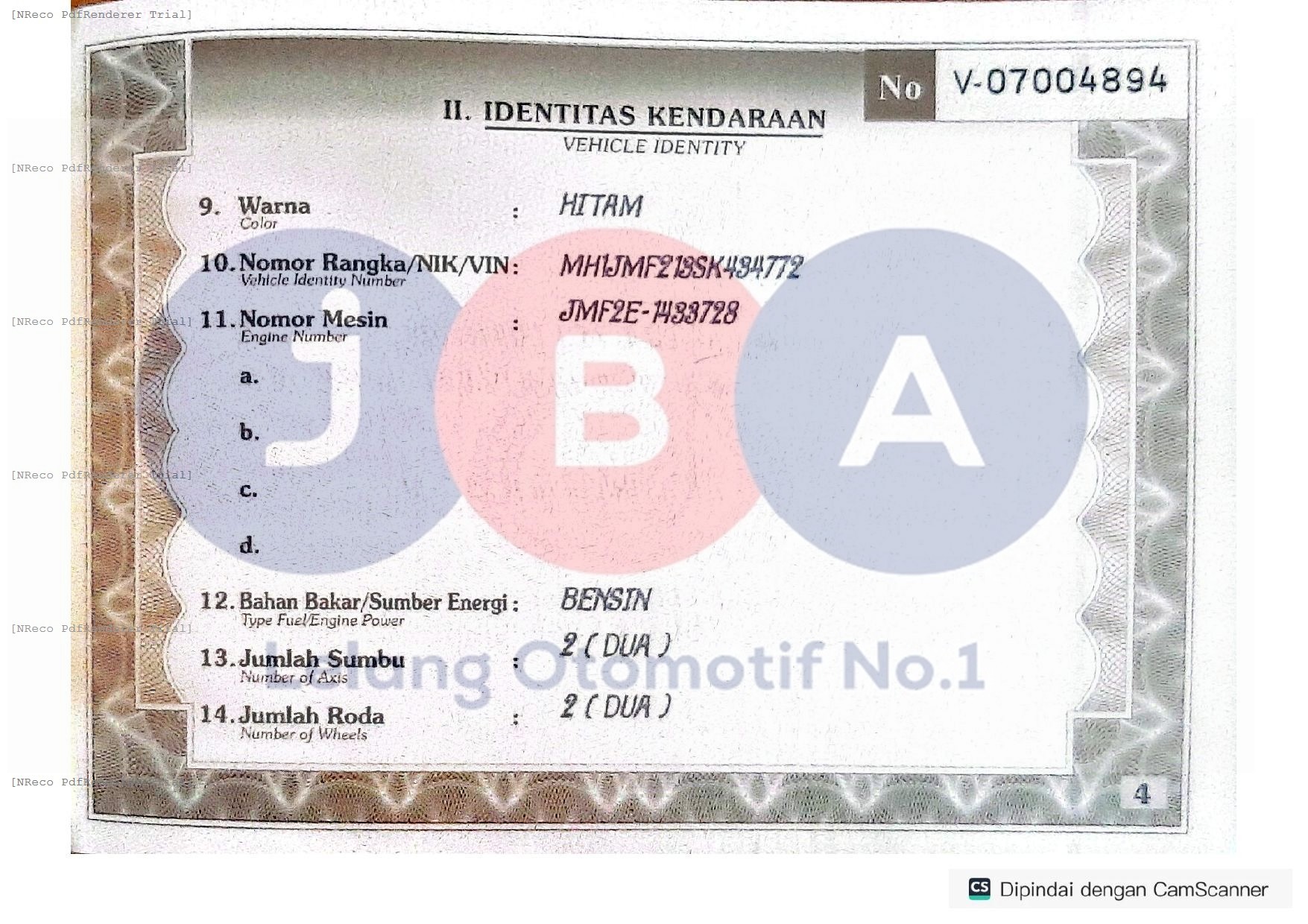 Nomor Rangka