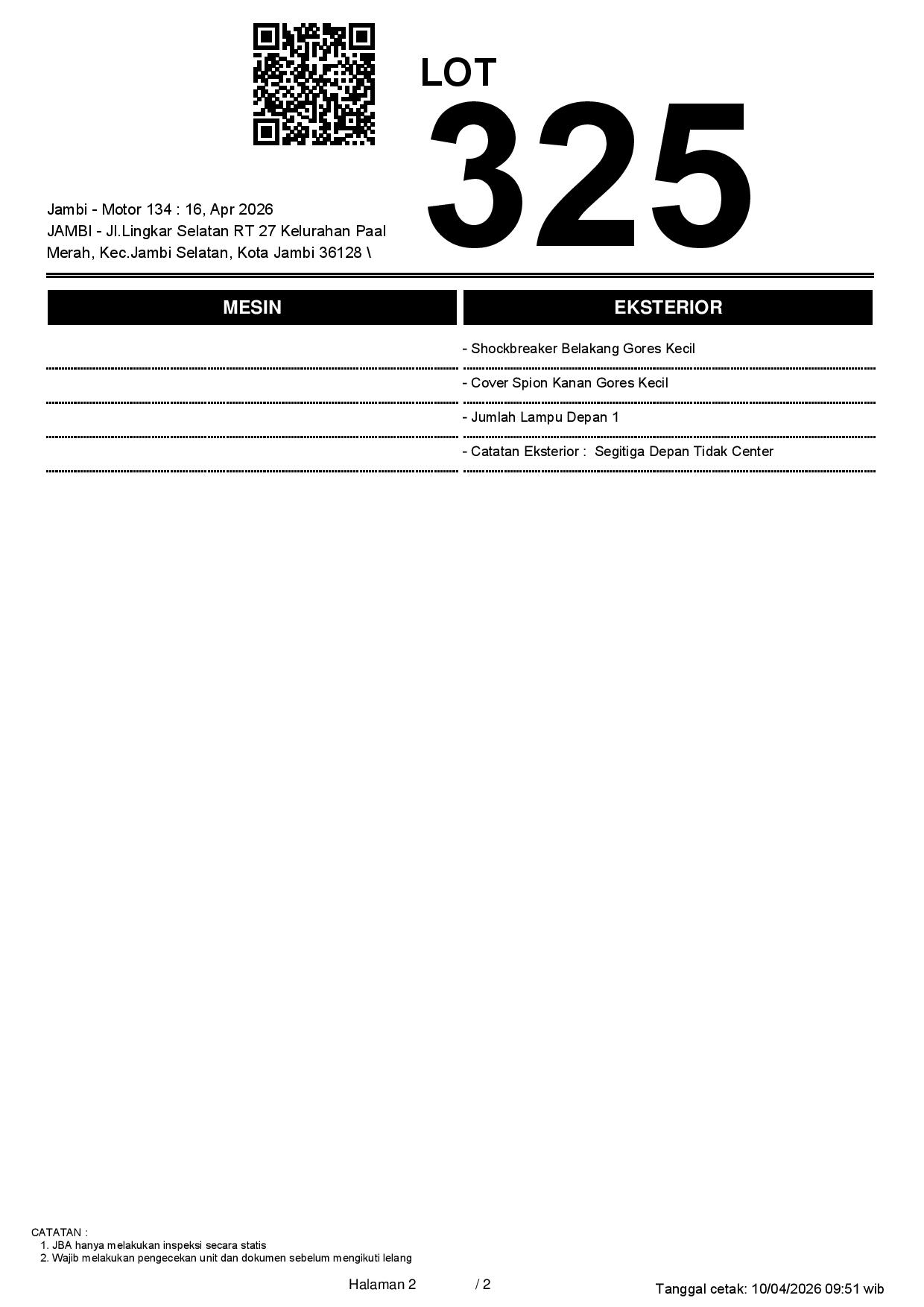 2. Peserta lelang wajib cek unit & dokumen
