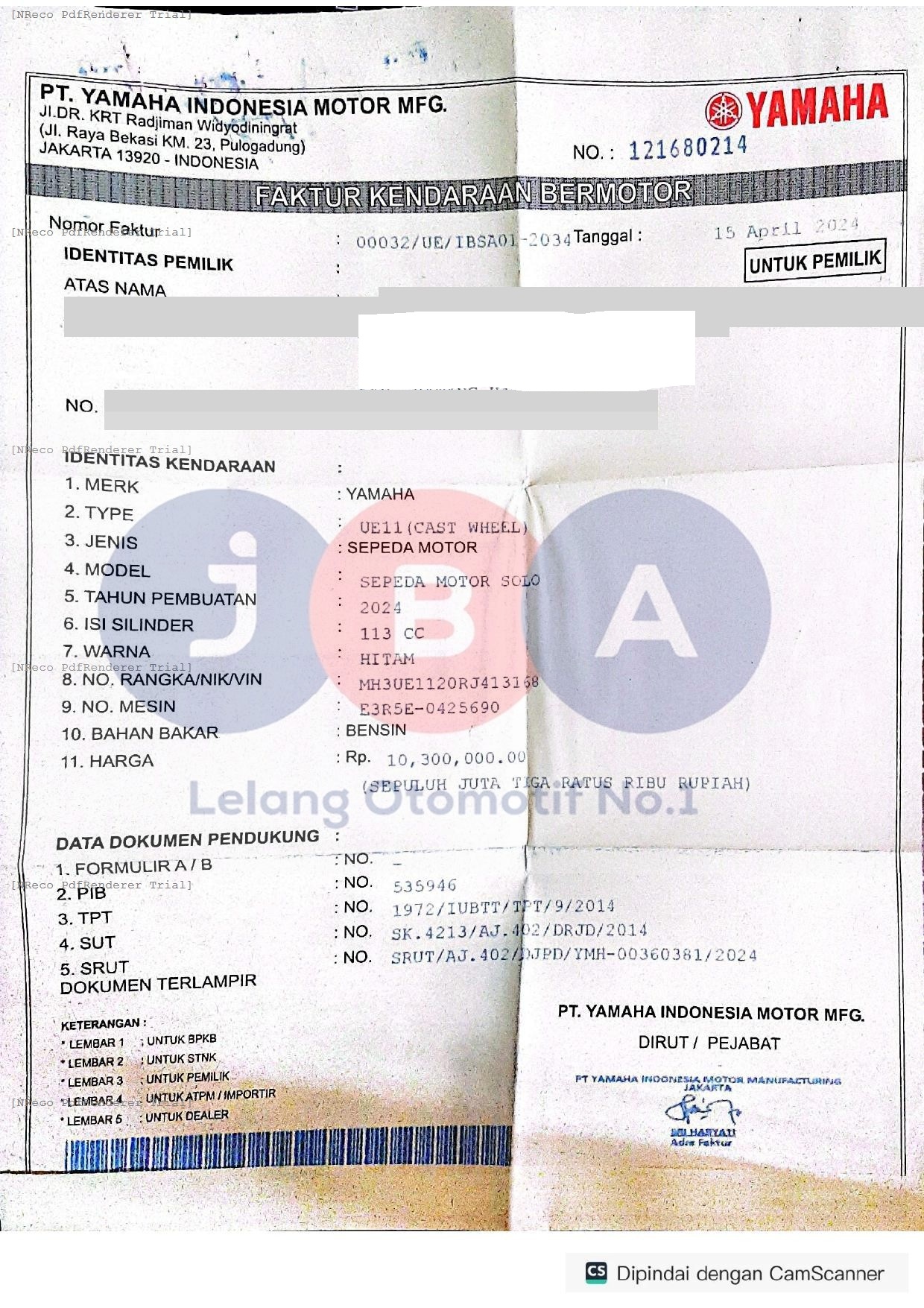 Nomor Rangka