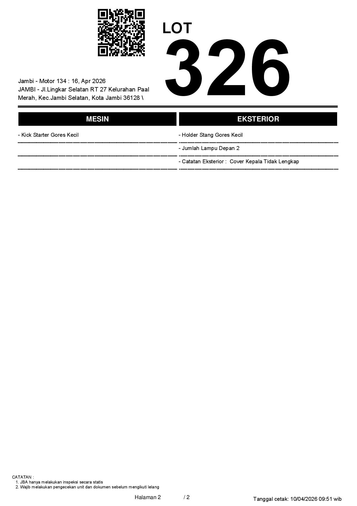 2. Peserta lelang wajib cek unit & dokumen