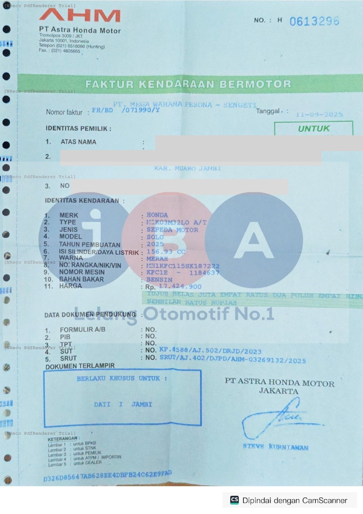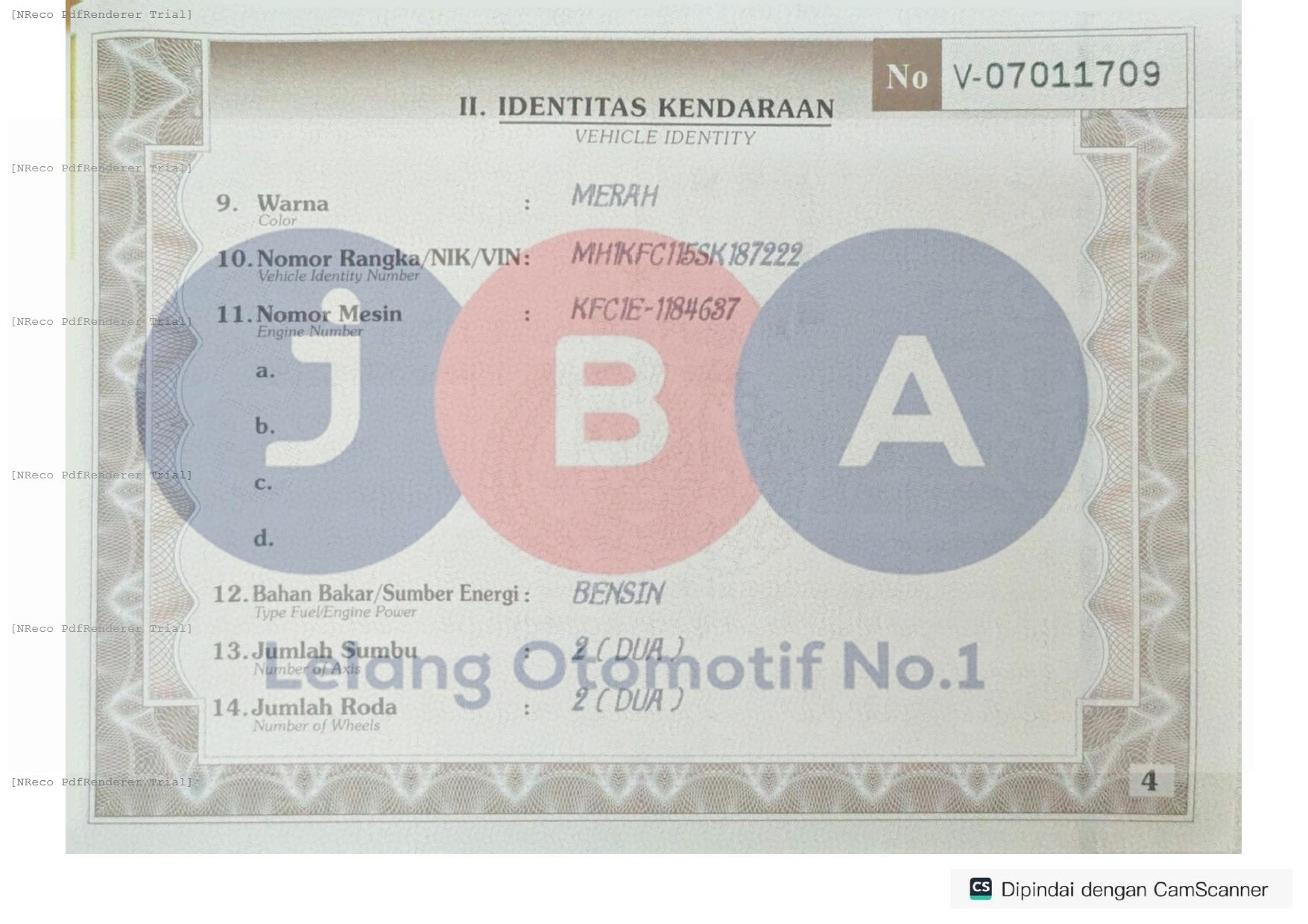 Nomor Rangka