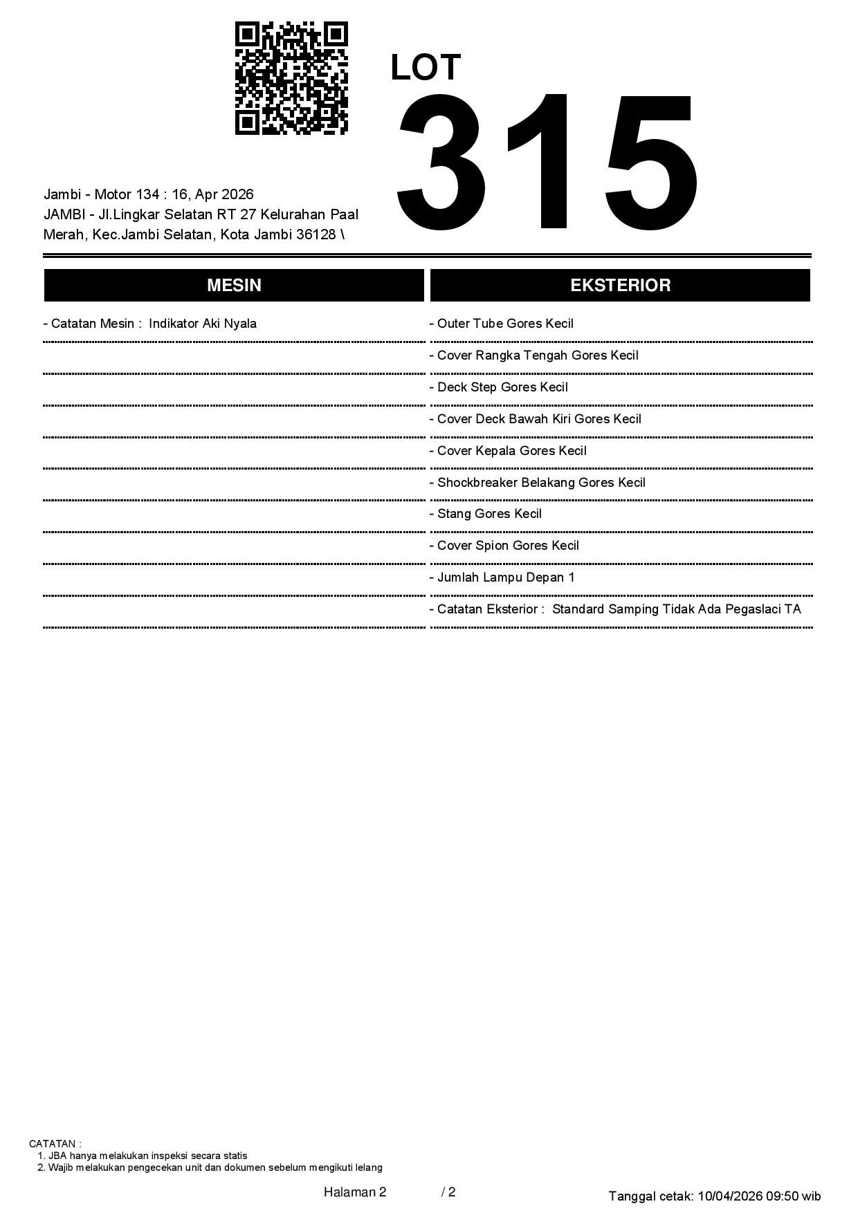 2. Peserta lelang wajib cek unit & dokumen