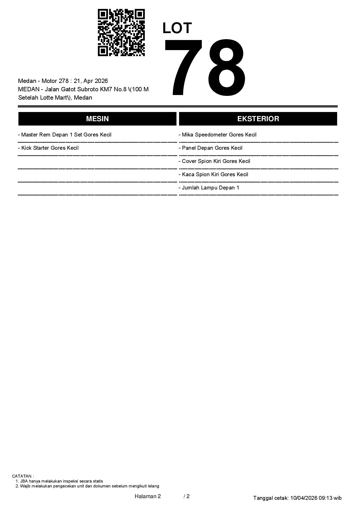 2. Peserta lelang wajib cek unit & dokumen