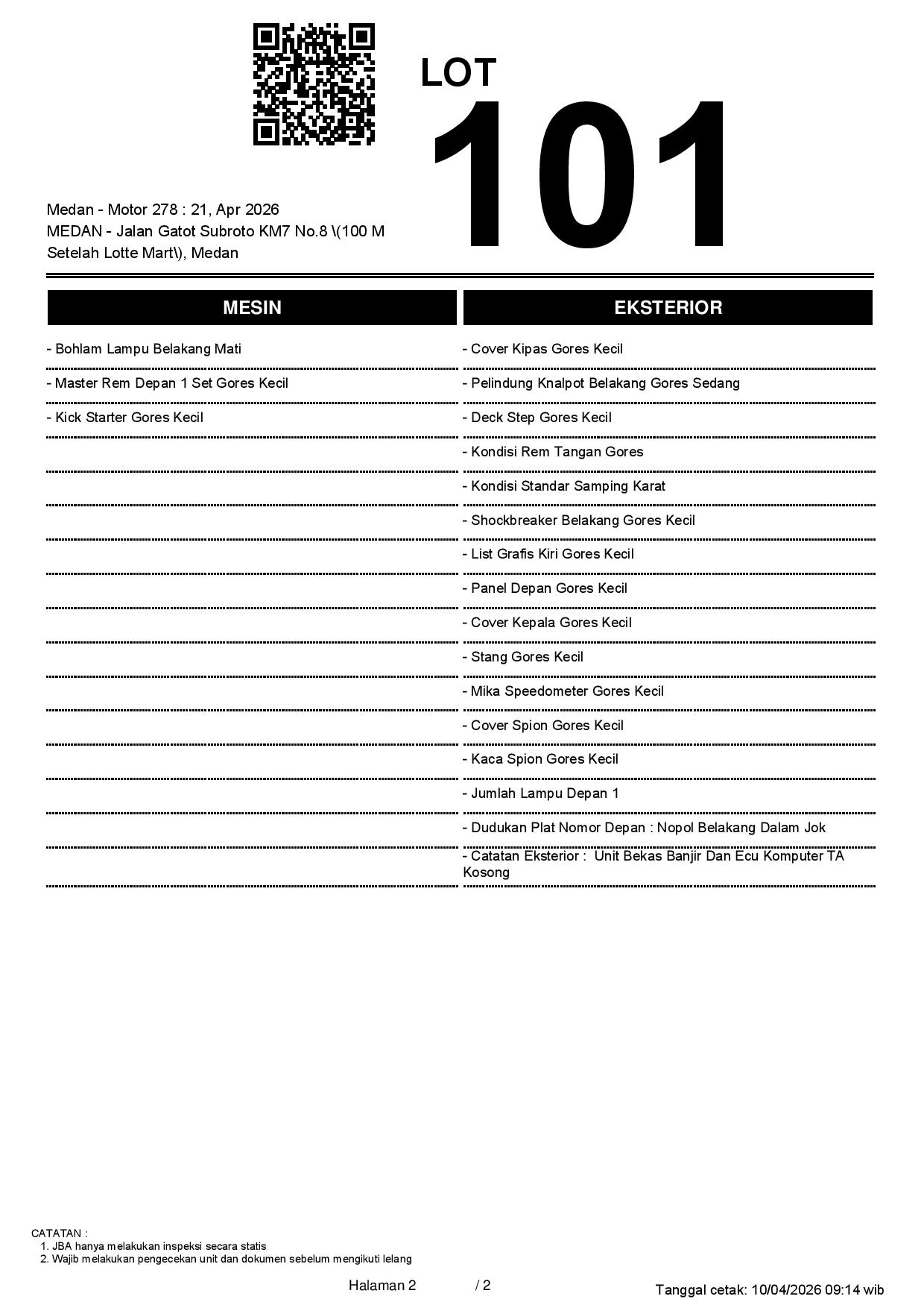 2. Peserta lelang wajib cek unit & dokumen