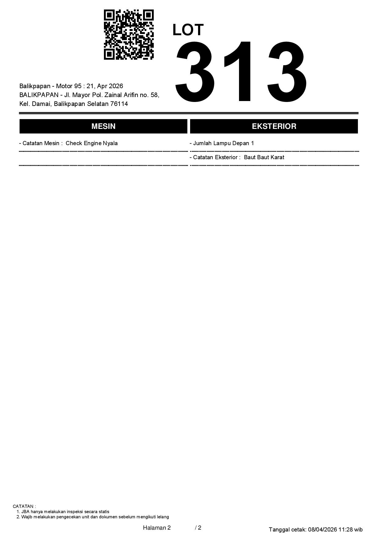 2. Peserta lelang wajib cek unit & dokumen