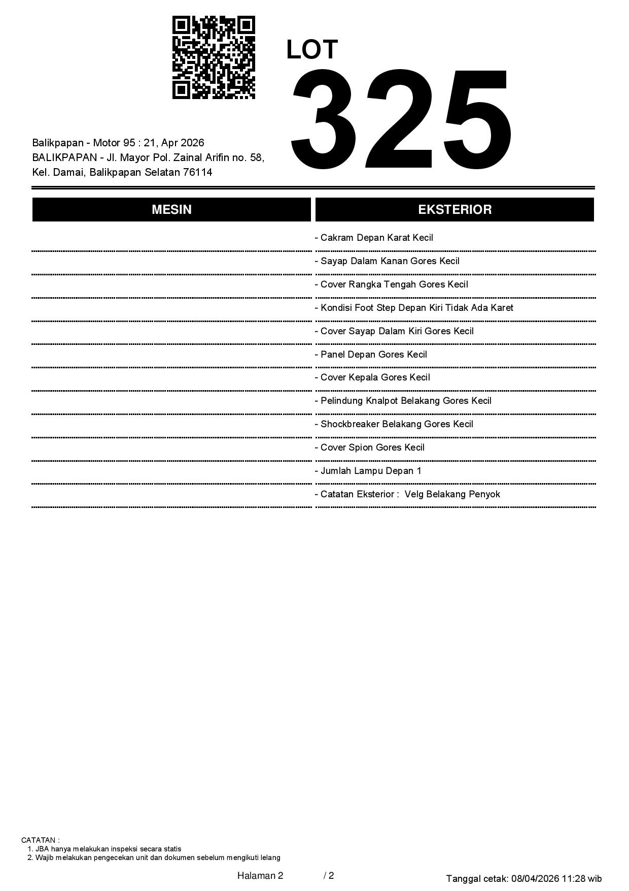 2. Peserta lelang wajib cek unit & dokumen