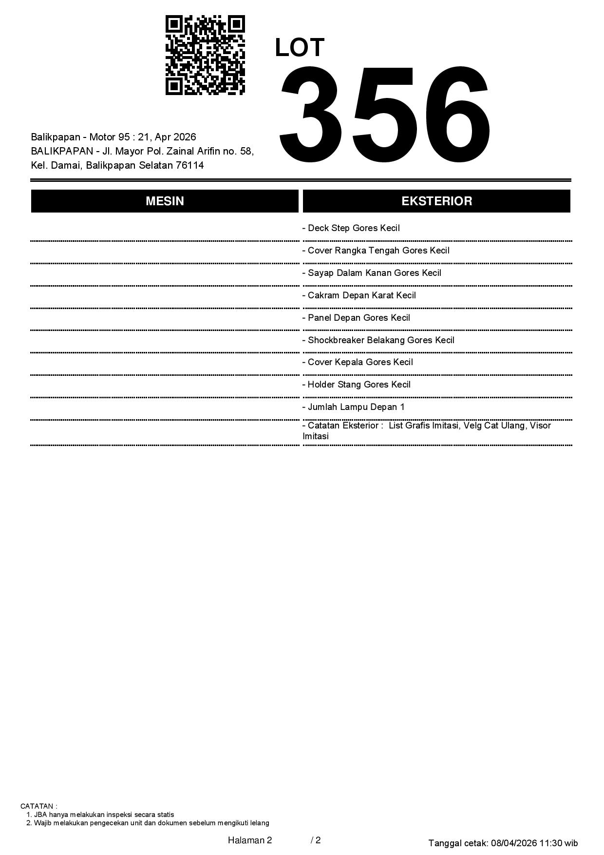 2. Peserta lelang wajib cek unit & dokumen