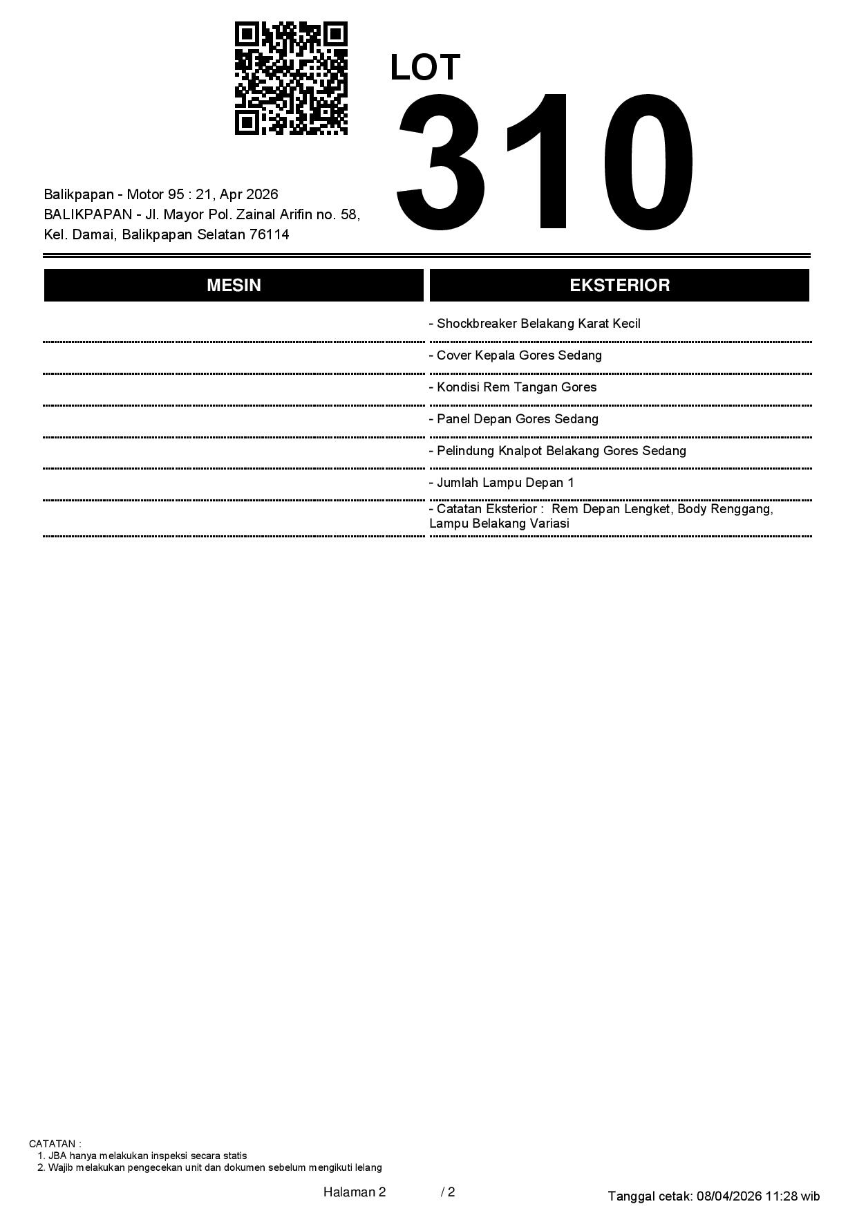 2. Peserta lelang wajib cek unit & dokumen