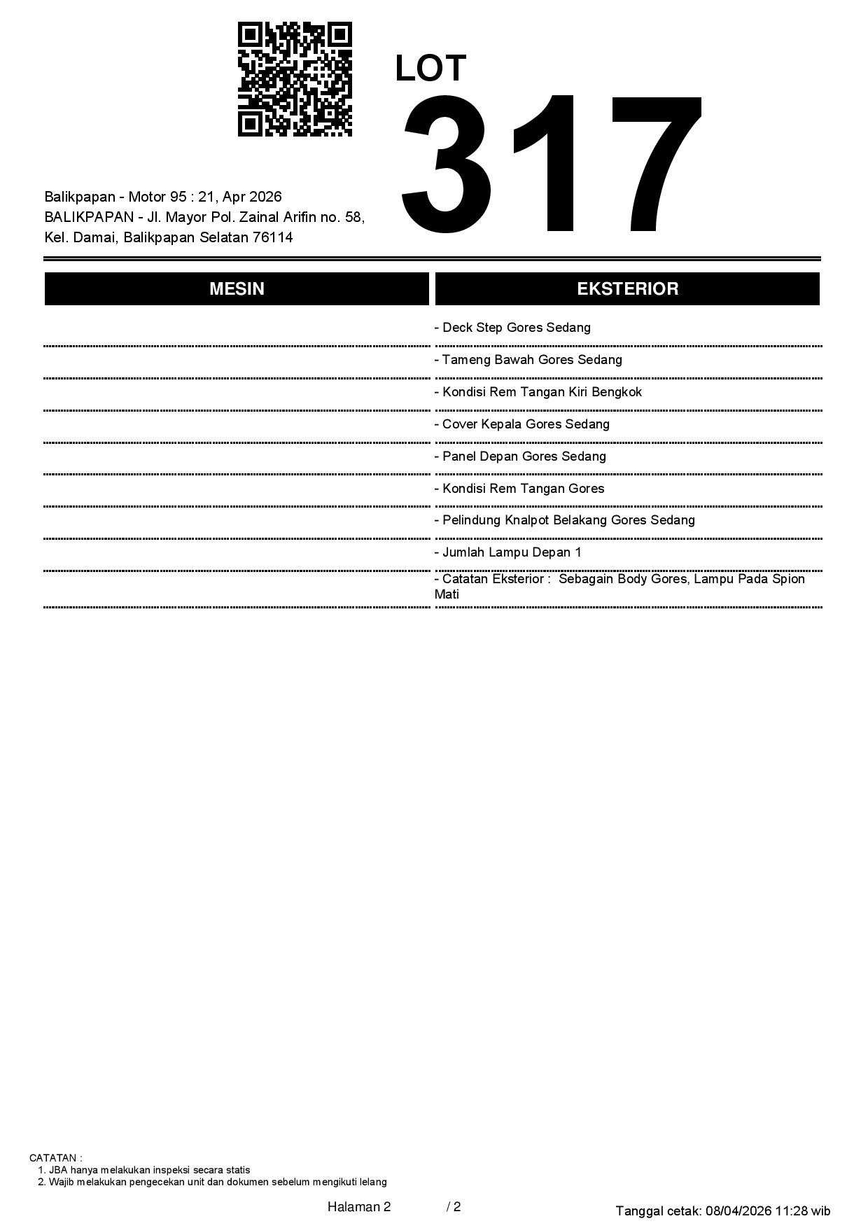 2. Peserta lelang wajib cek unit & dokumen