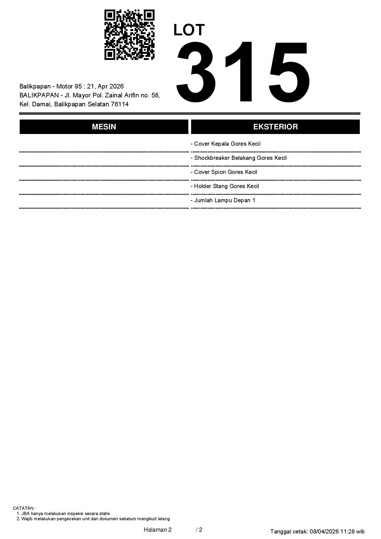 2. Peserta lelang wajib cek unit & dokumen