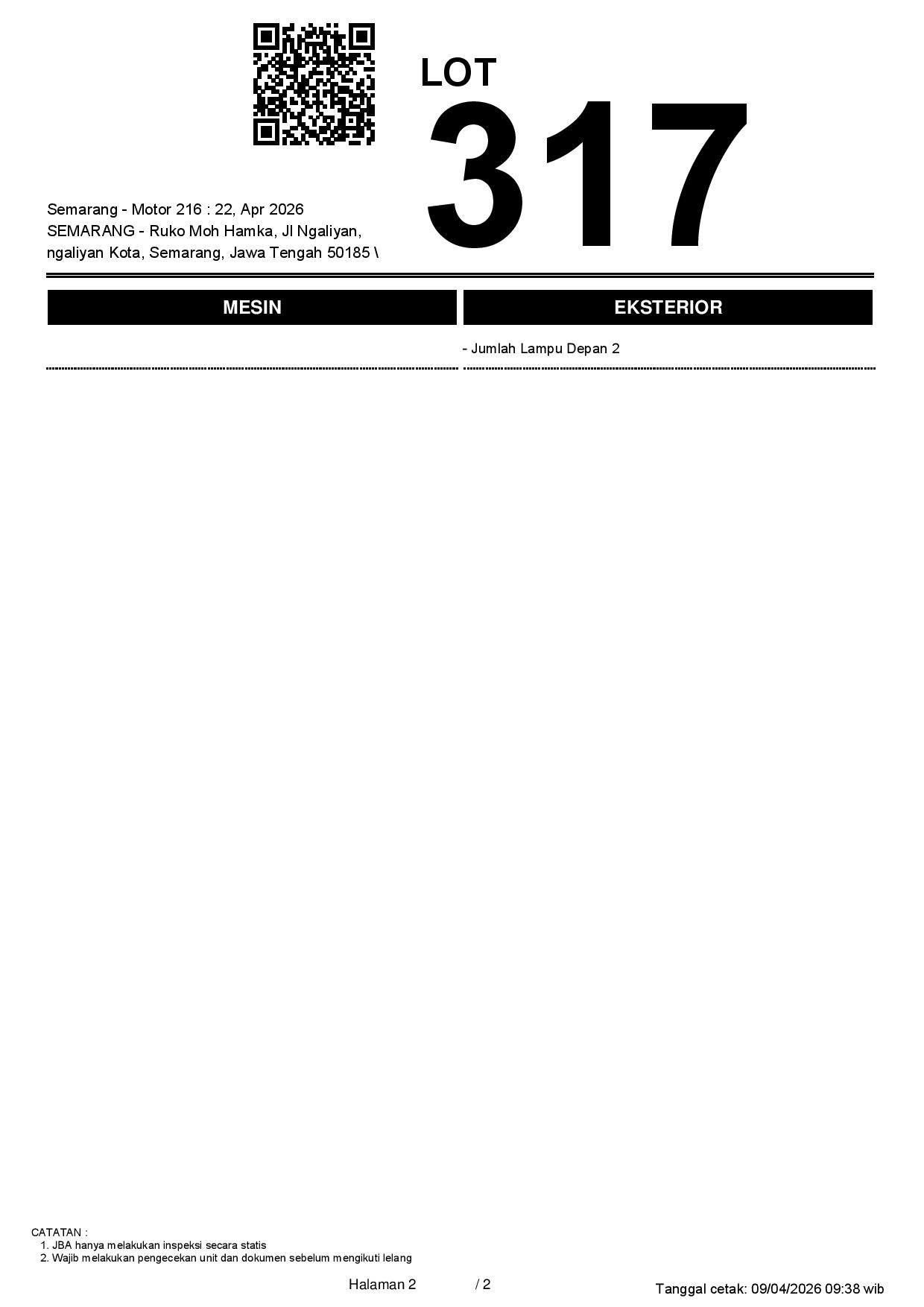2. Peserta lelang wajib cek unit & dokumen