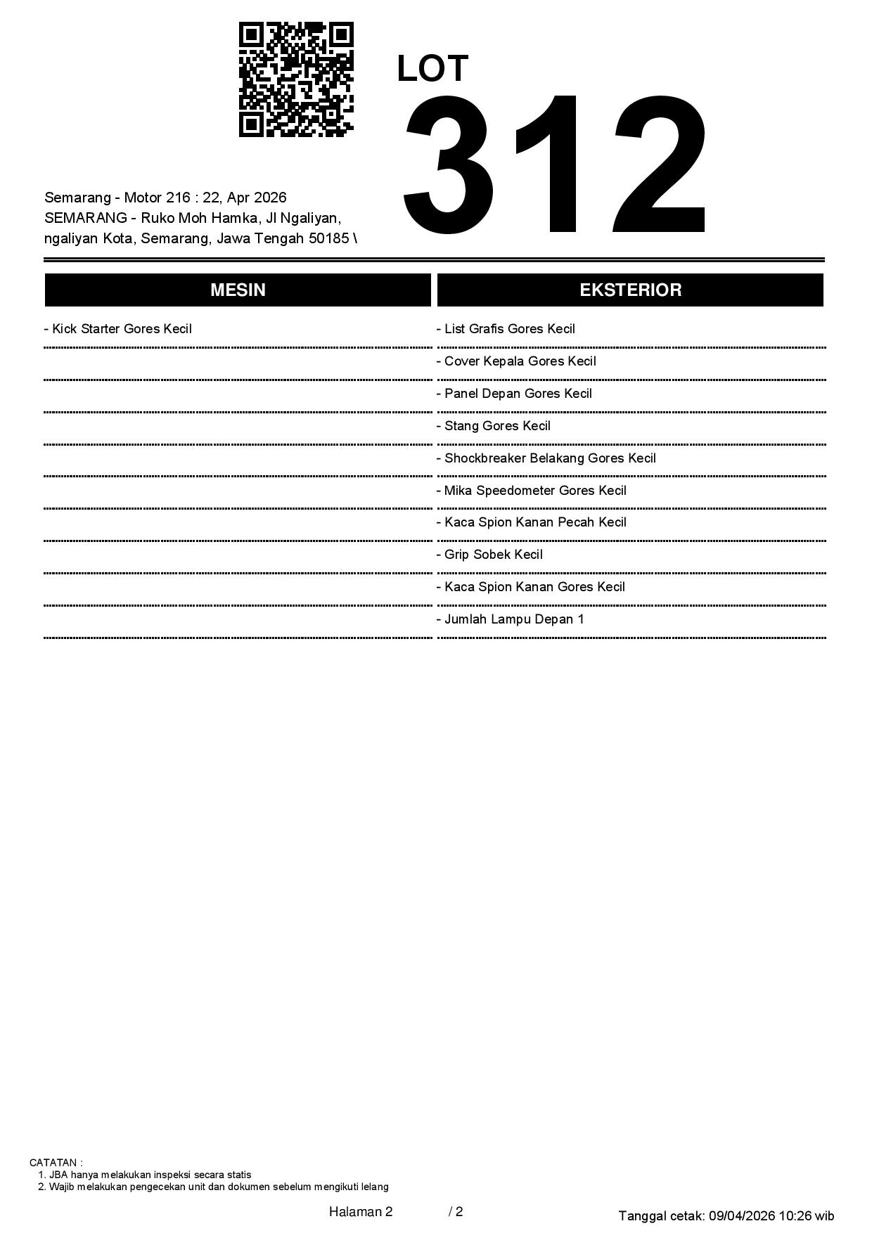 2. Peserta lelang wajib cek unit & dokumen