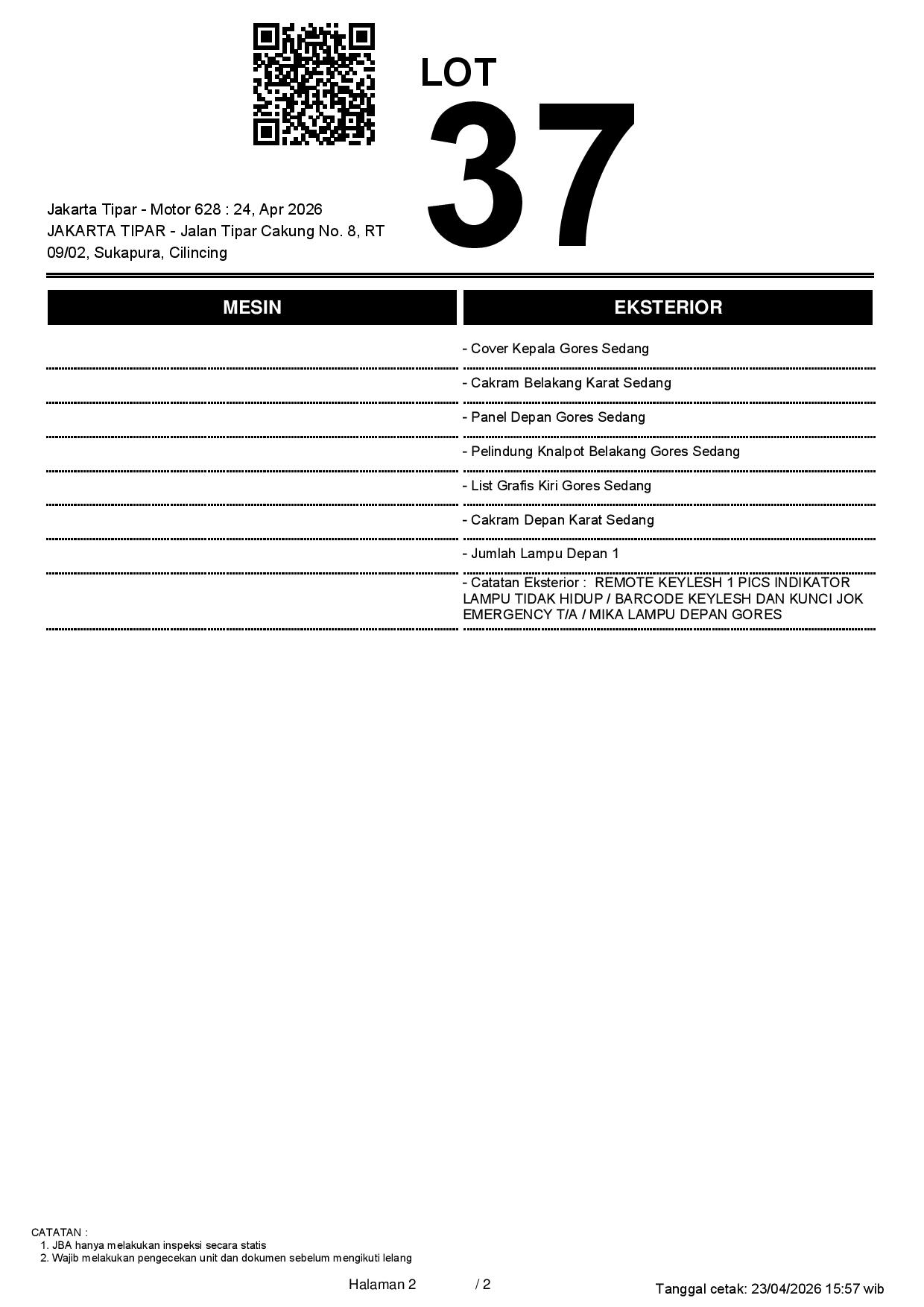 2. Peserta lelang wajib cek unit & dokumen