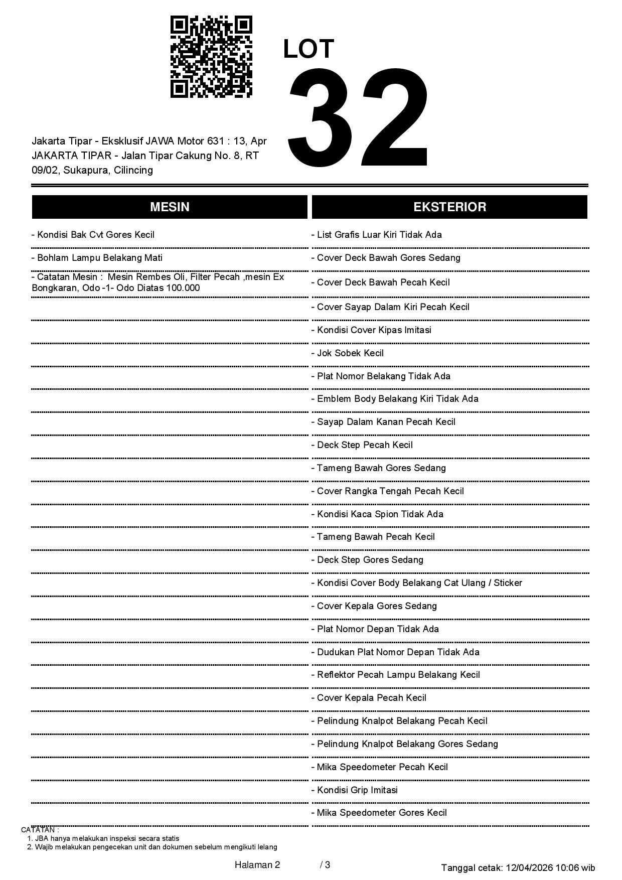 2. Peserta lelang wajib cek unit & dokumen
