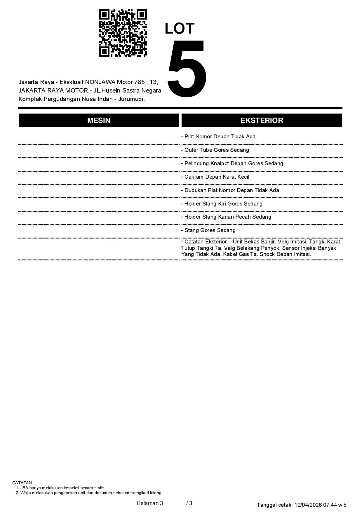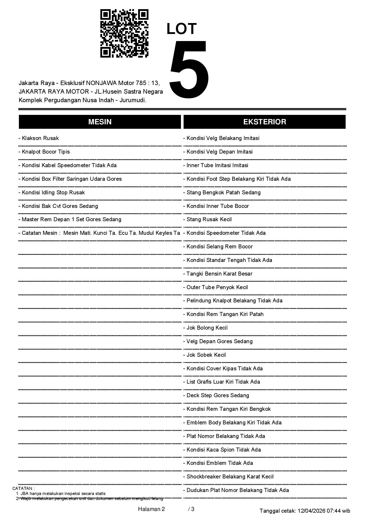 2. Peserta lelang wajib cek unit & dokumen