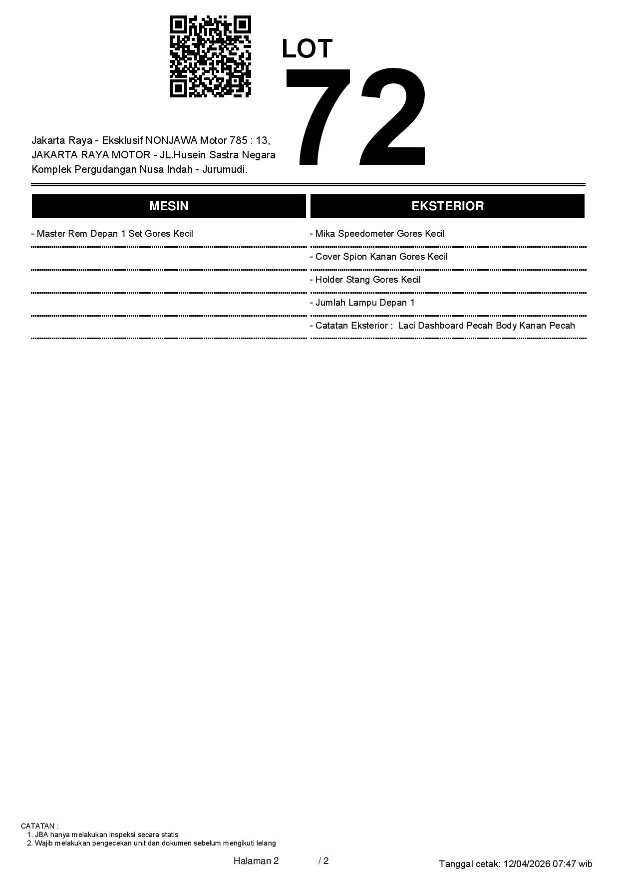2. Peserta lelang wajib cek unit & dokumen
