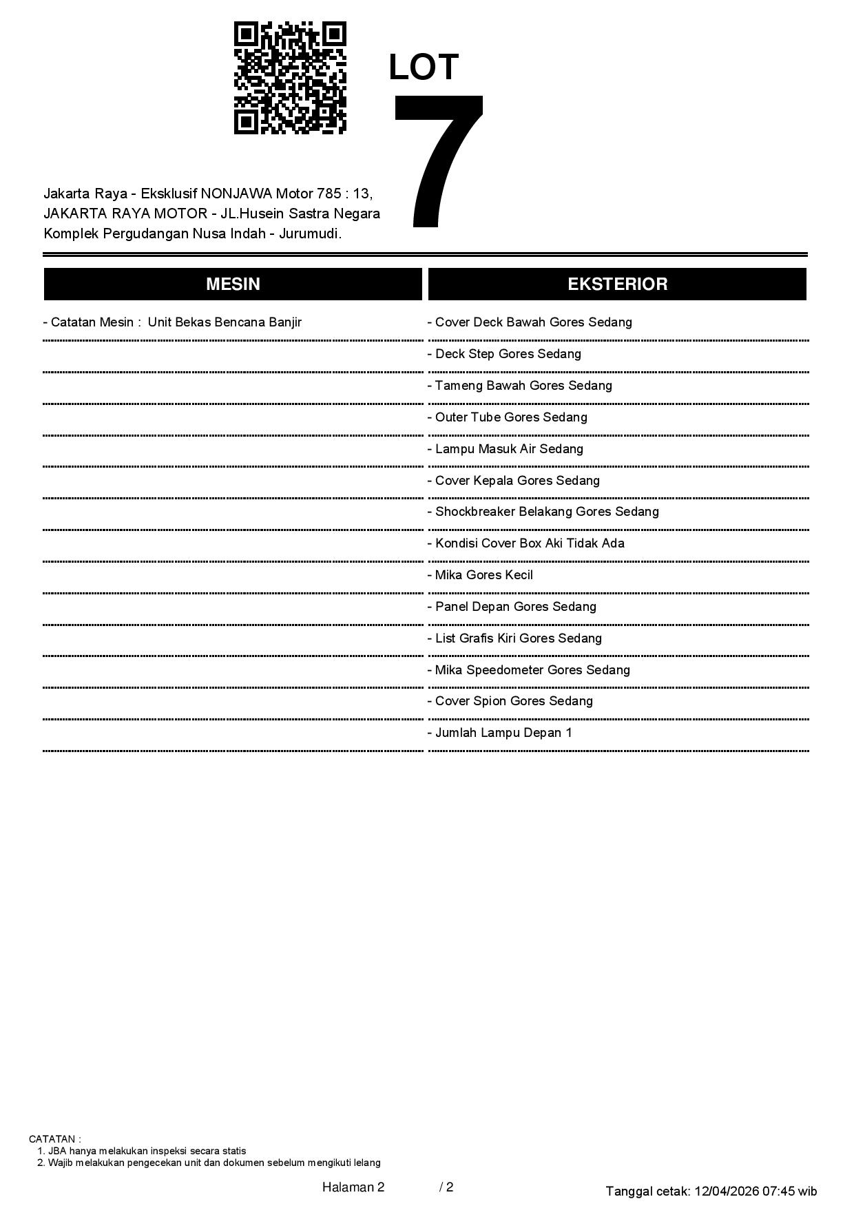 2. Peserta lelang wajib cek unit & dokumen