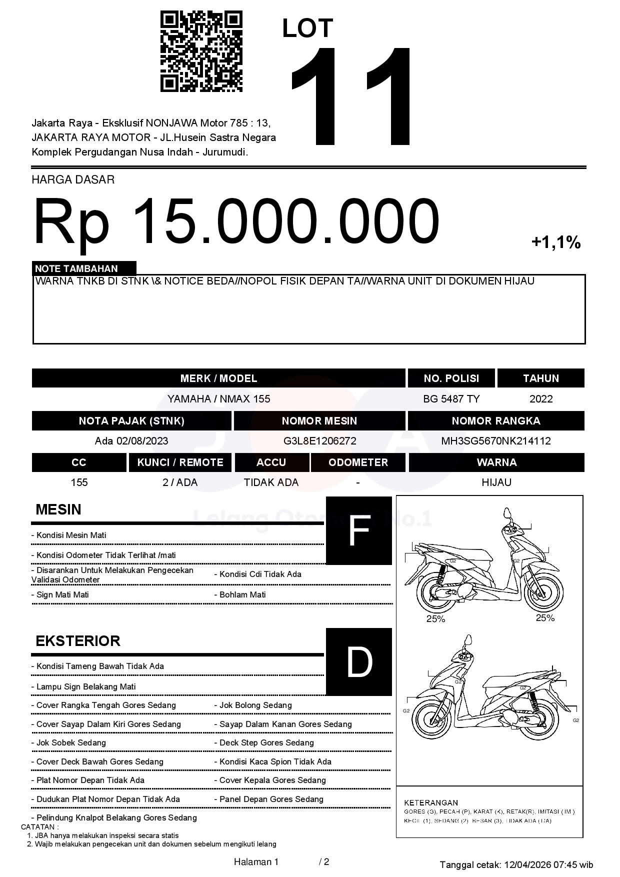 WARNA TNKB DI STNK & NOTICE BEDA//NOPOL FISIK DEPAN TA//WARNA UNIT DI DOKUMEN HIJAU