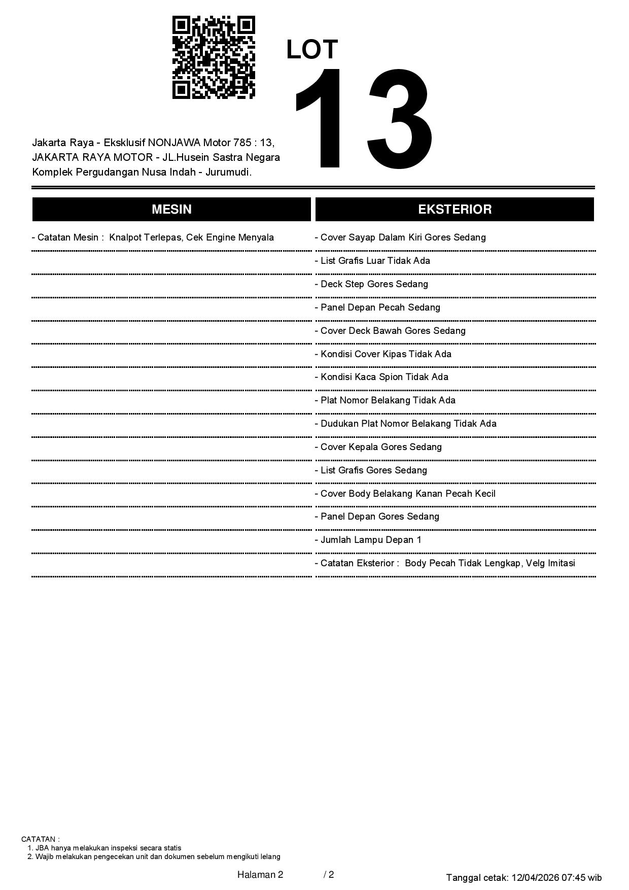 2. Peserta lelang wajib cek unit & dokumen