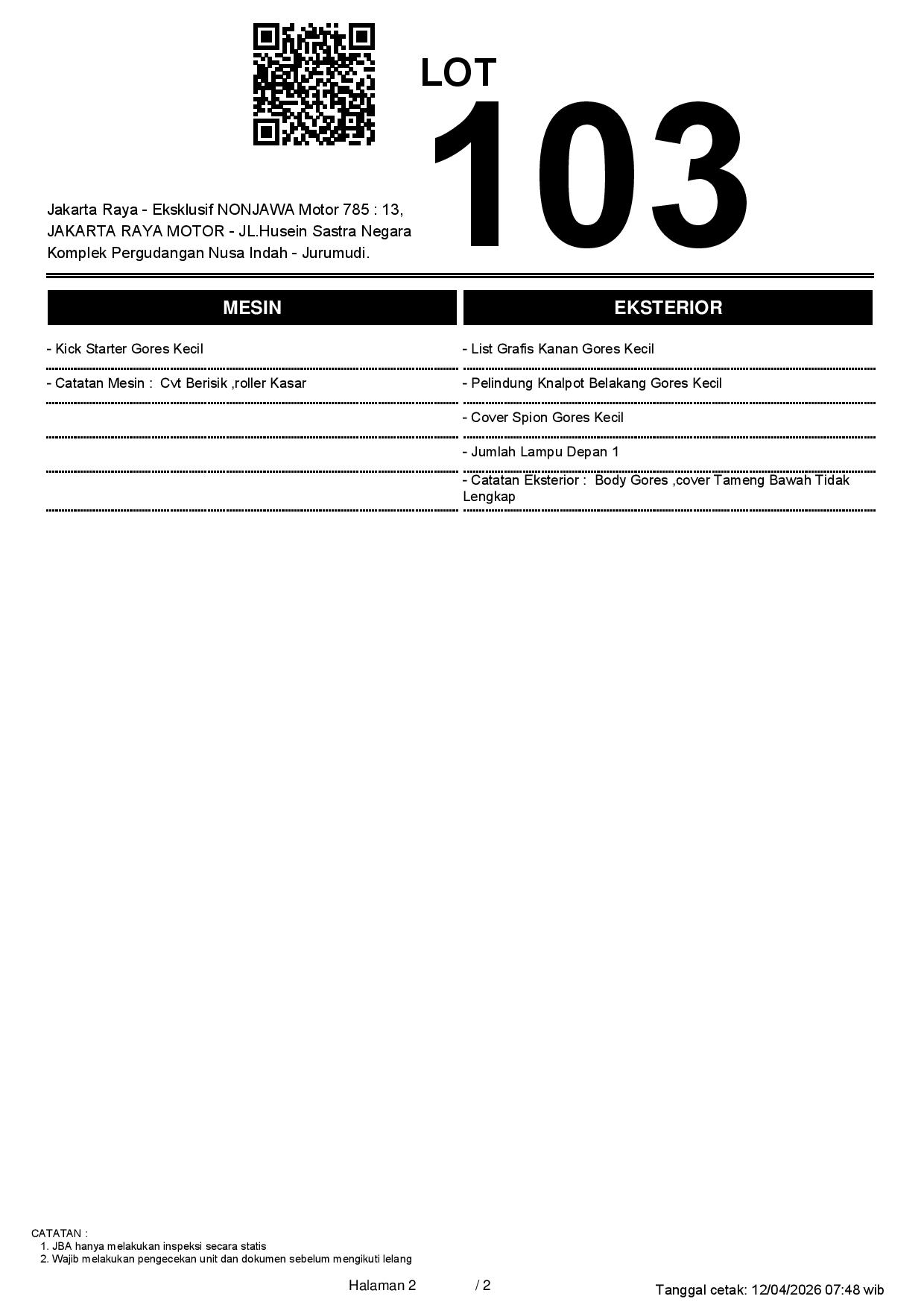 2. Peserta lelang wajib cek unit & dokumen