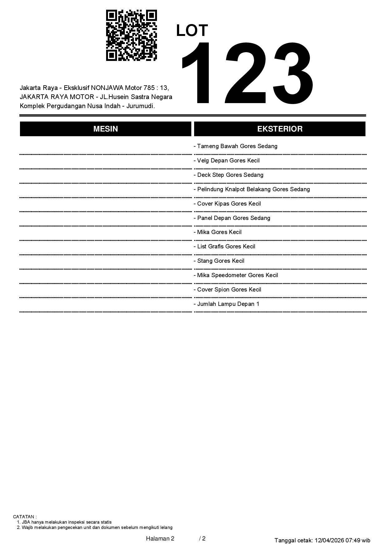 2. Peserta lelang wajib cek unit & dokumen