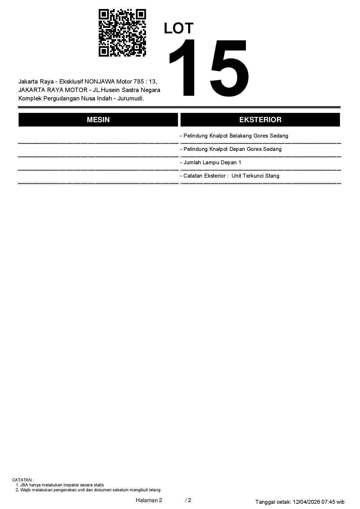 2. Peserta lelang wajib cek unit & dokumen