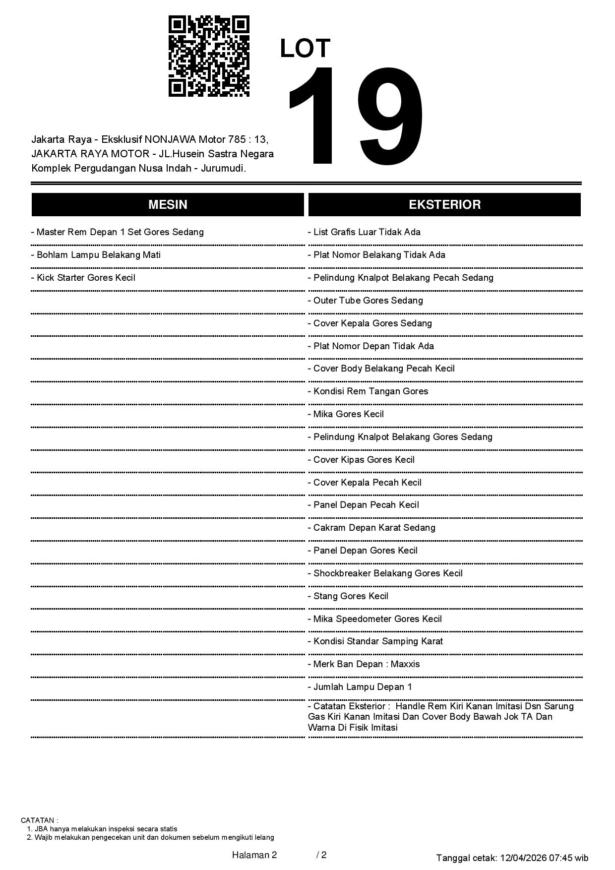 2. Peserta lelang wajib cek unit & dokumen