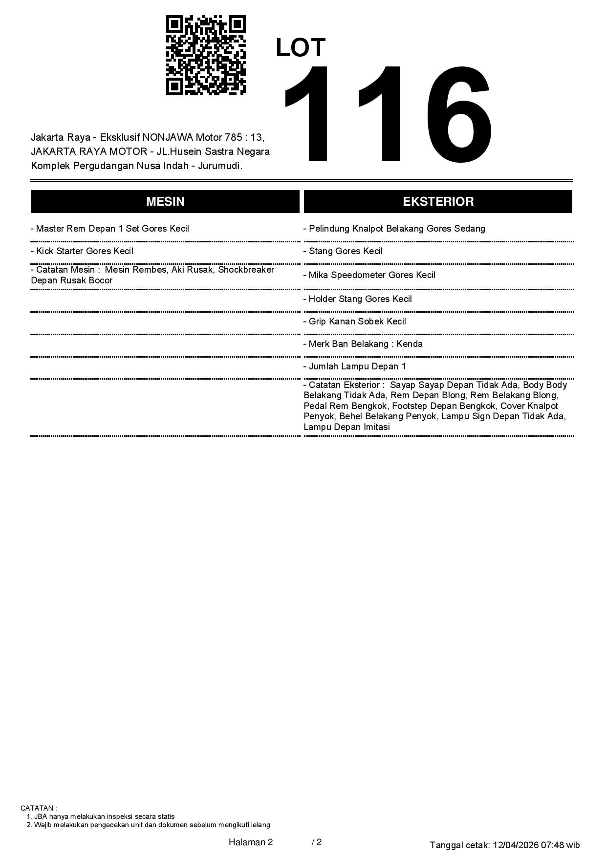 2. Peserta lelang wajib cek unit & dokumen