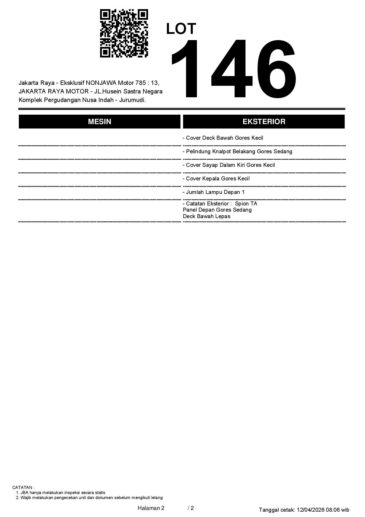2. Peserta lelang wajib cek unit & dokumen