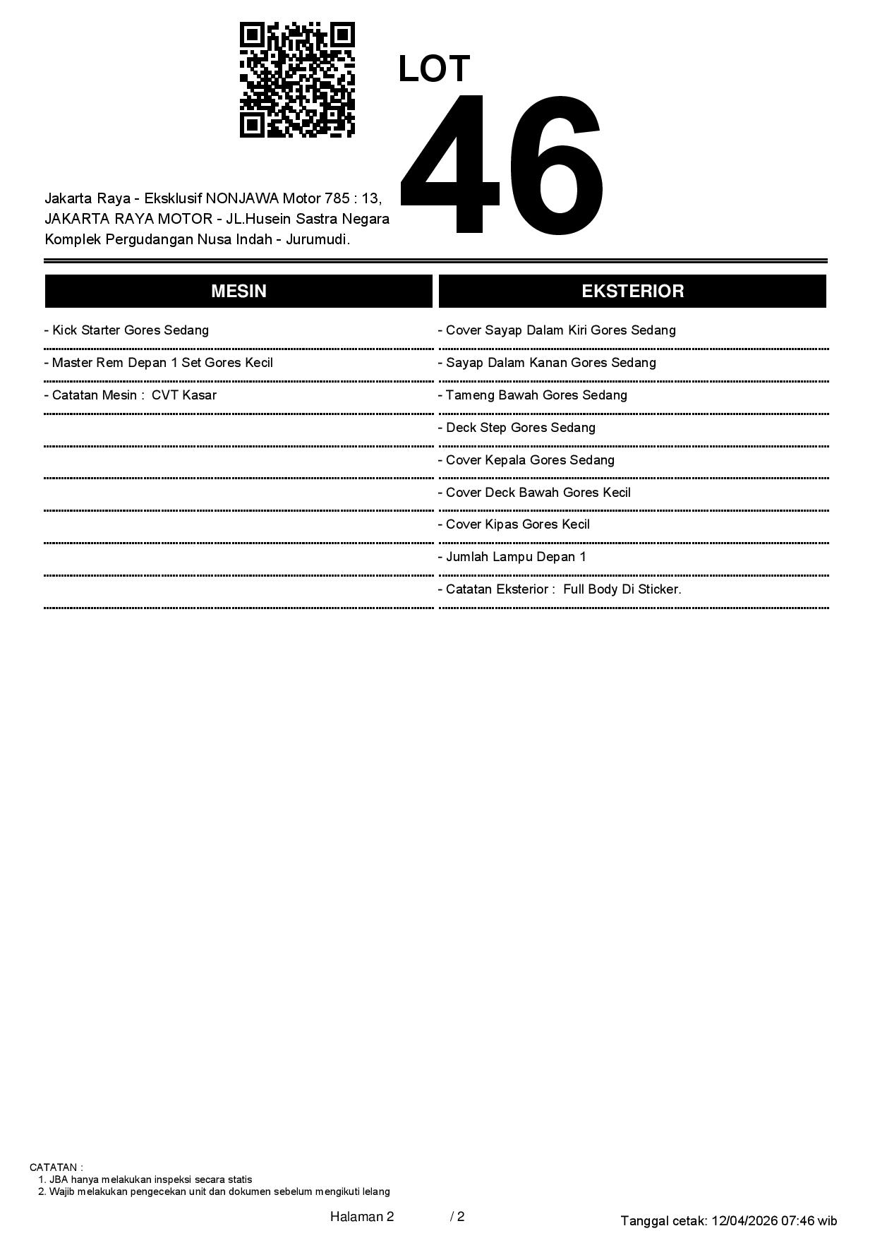 2. Peserta lelang wajib cek unit & dokumen