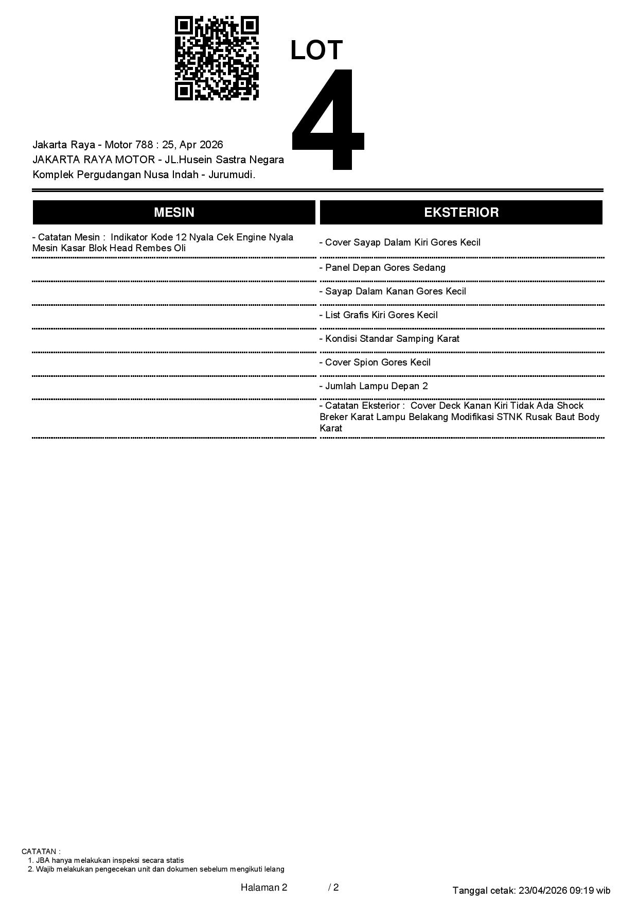 2. Peserta lelang wajib cek unit & dokumen