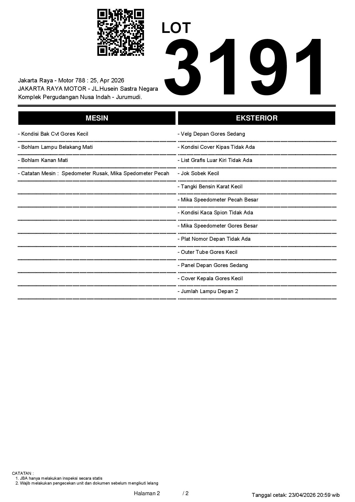 2. Peserta lelang wajib cek unit & dokumen