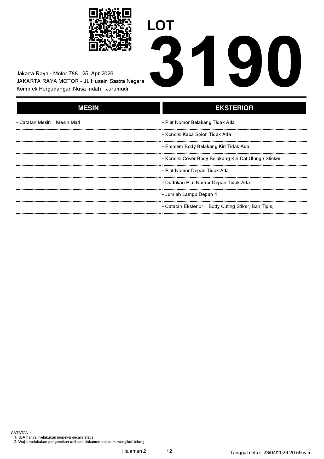 2. Peserta lelang wajib cek unit & dokumen