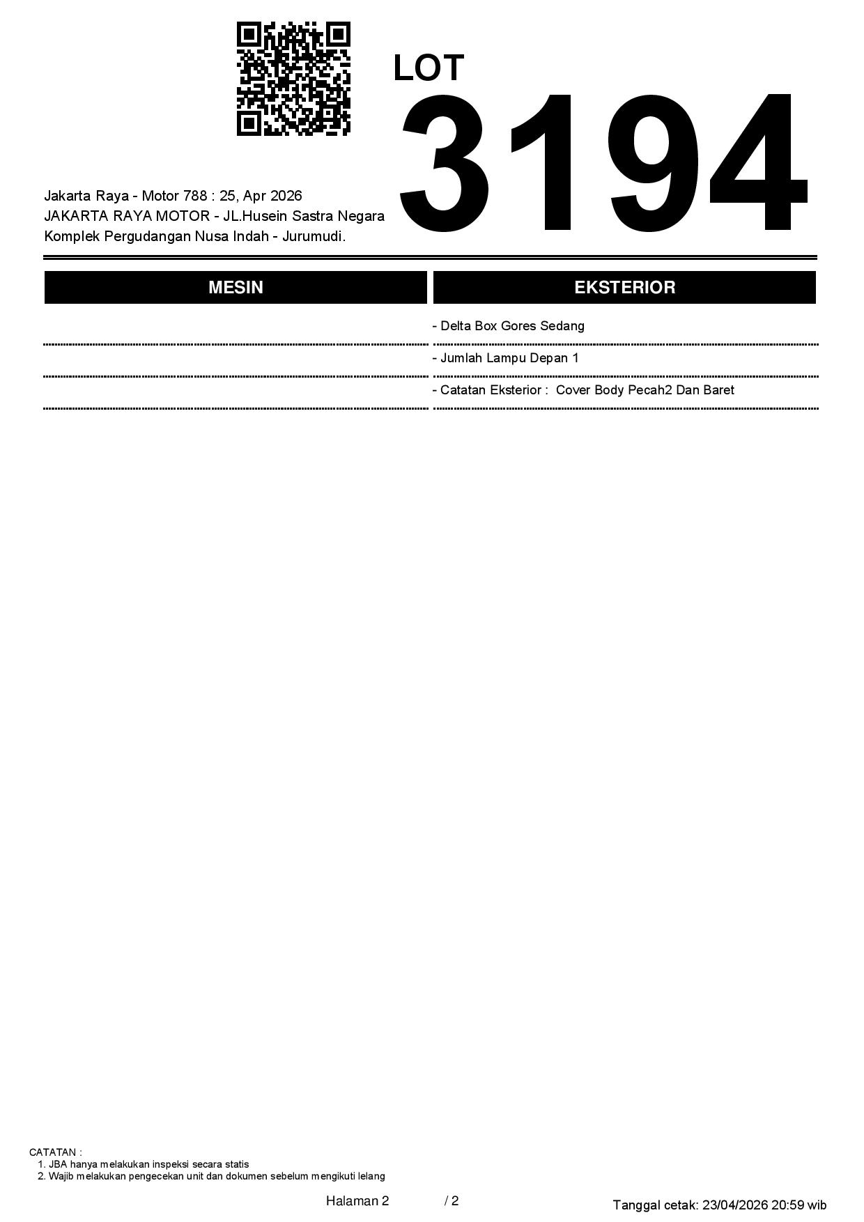 Tanggal Lelang: 25/04/2026 11:00 | WIB