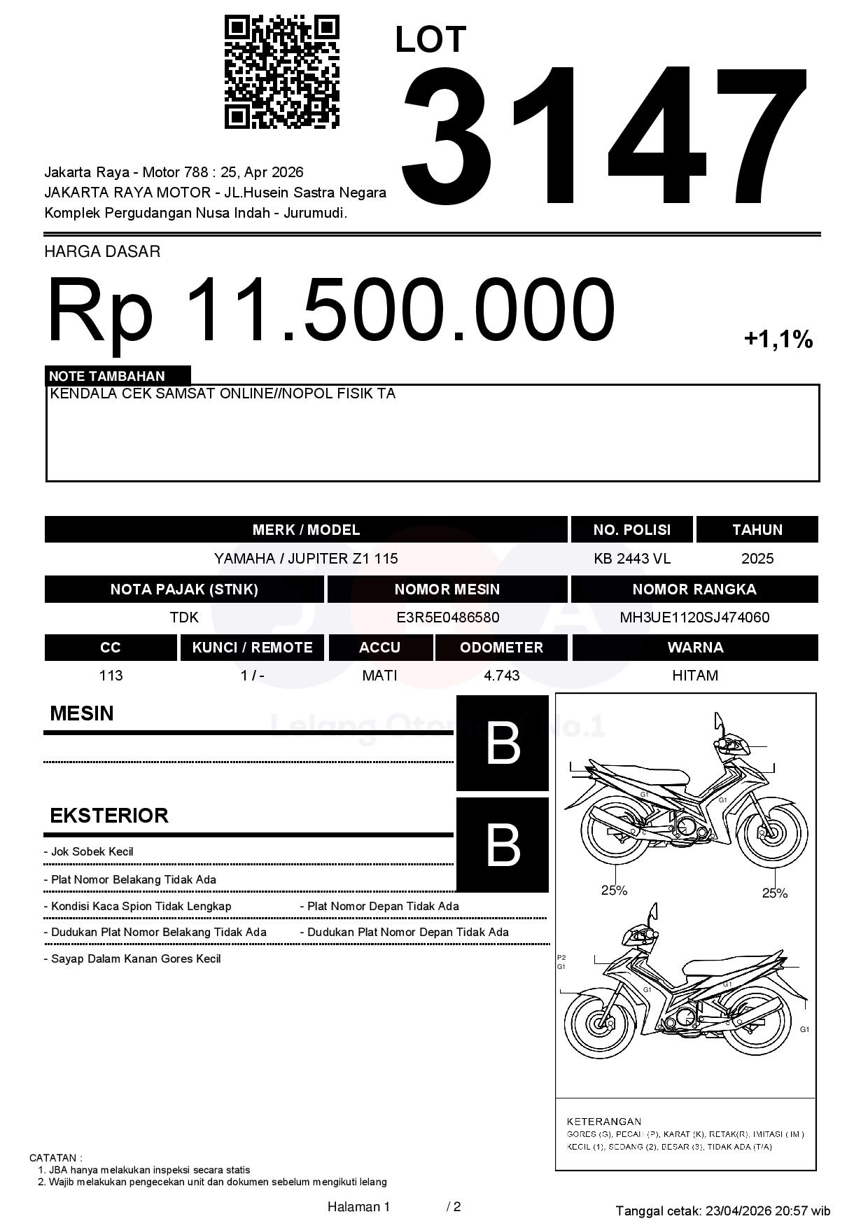 Tanggal Lelang: 25/04/2026 11:00 | WIB