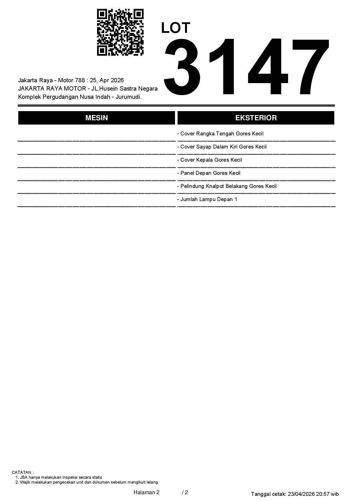 2. Peserta lelang wajib cek unit & dokumen