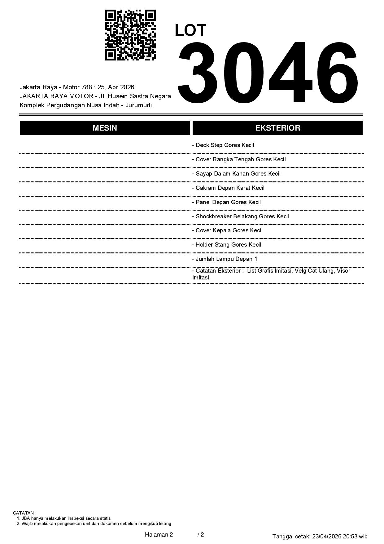 2. Peserta lelang wajib cek unit & dokumen