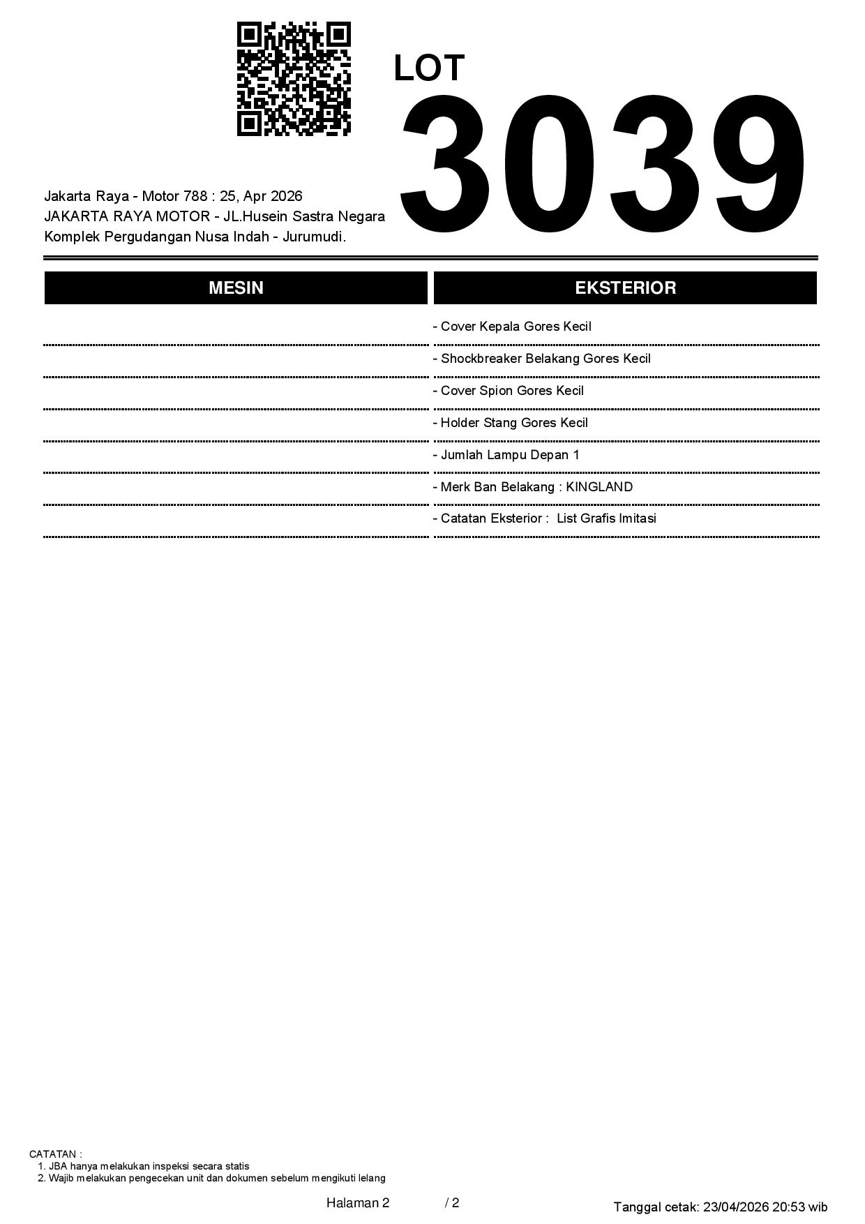 2. Peserta lelang wajib cek unit & dokumen