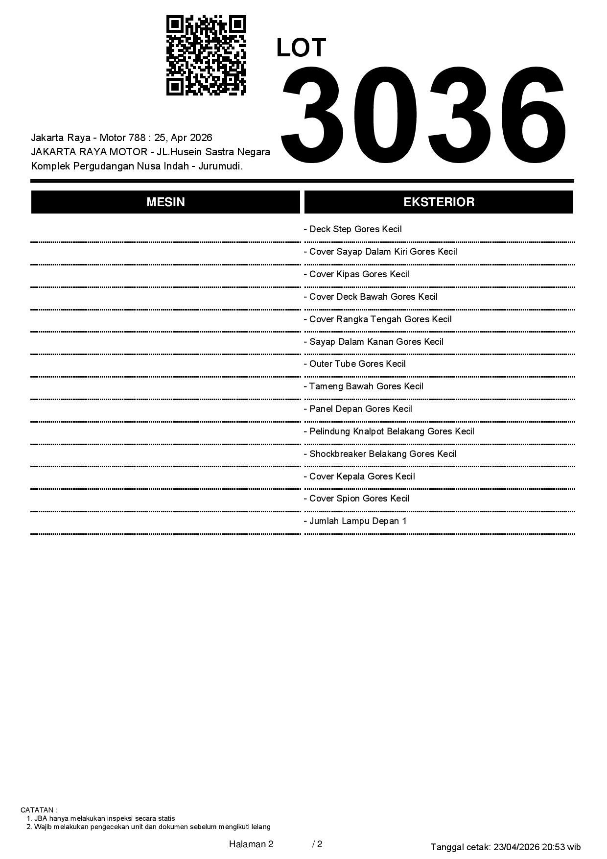 2. Peserta lelang wajib cek unit & dokumen