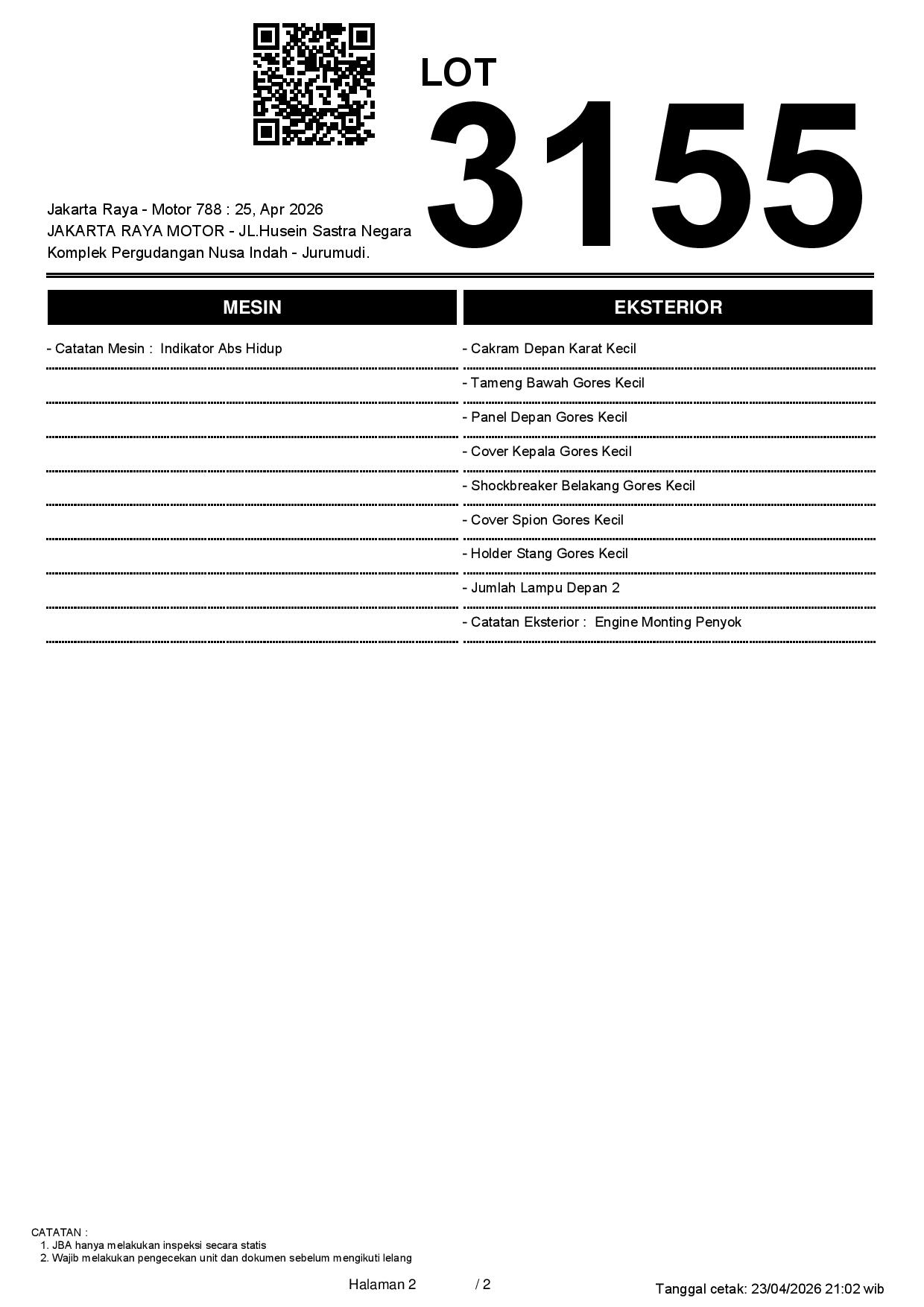 2. Peserta lelang wajib cek unit & dokumen