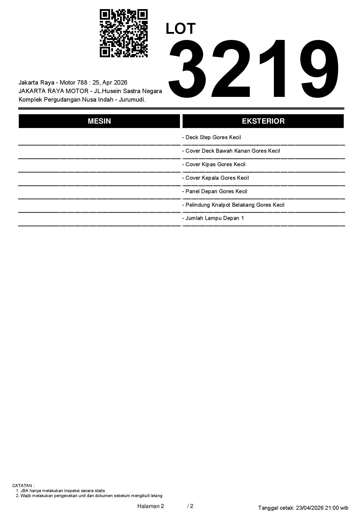 2. Peserta lelang wajib cek unit & dokumen