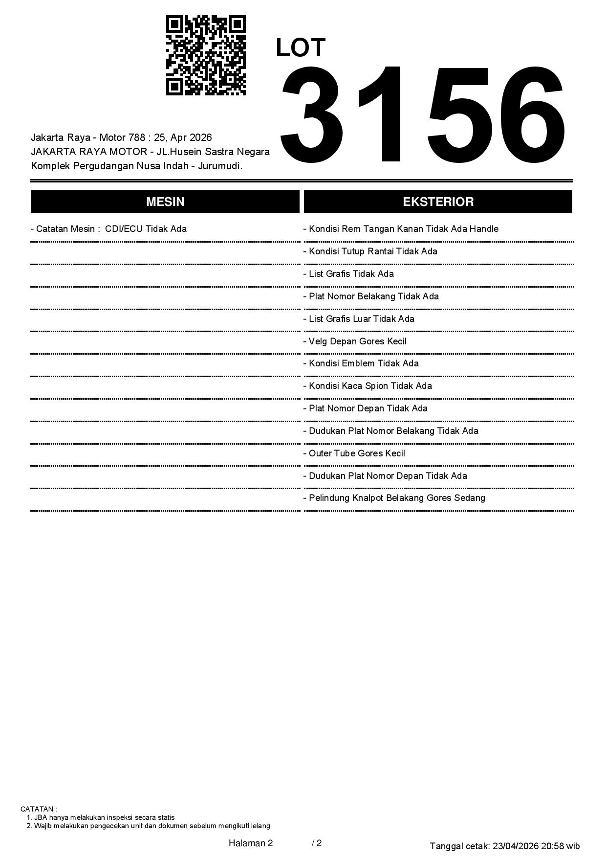 2. Peserta lelang wajib cek unit & dokumen