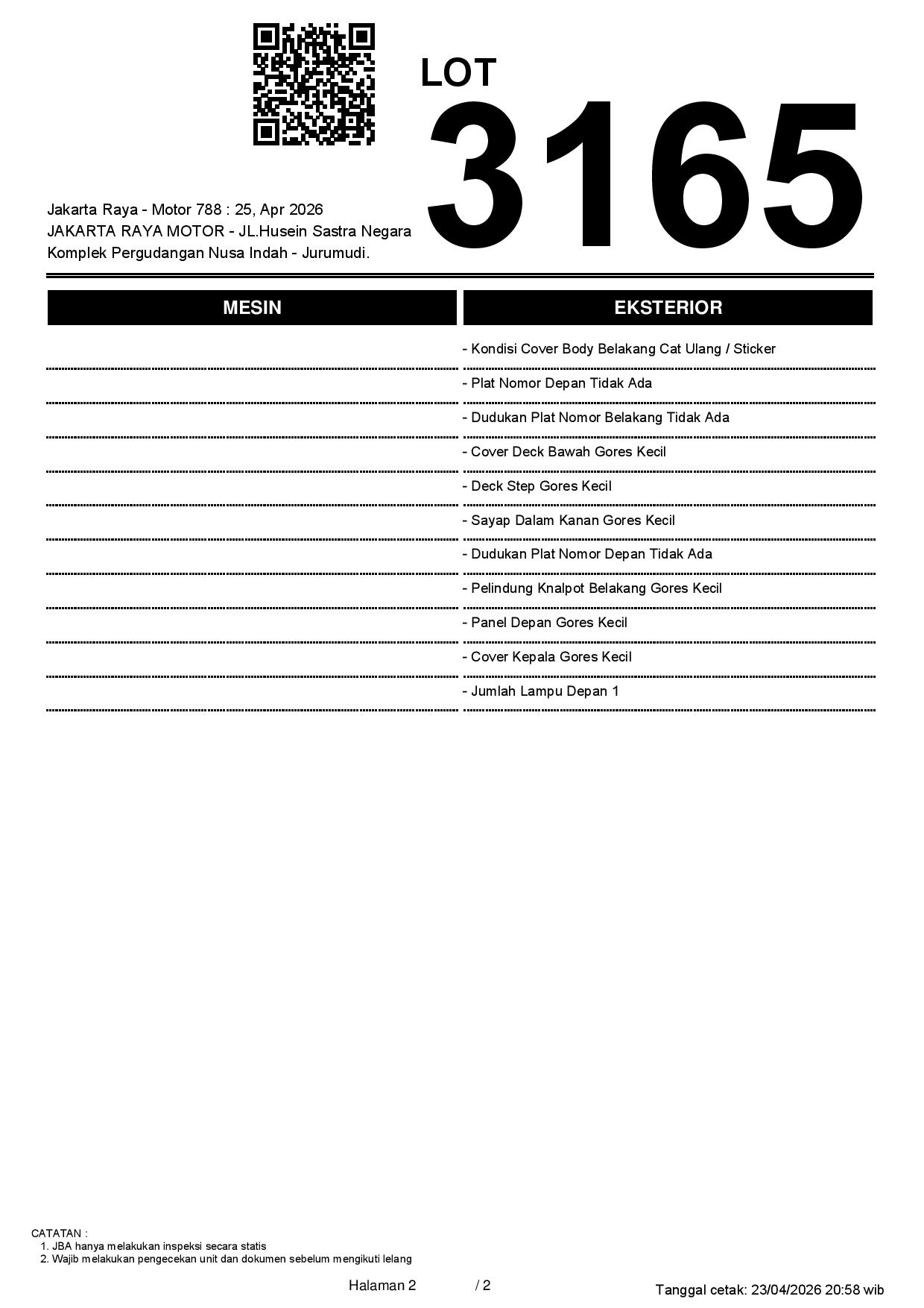 2. Peserta lelang wajib cek unit & dokumen